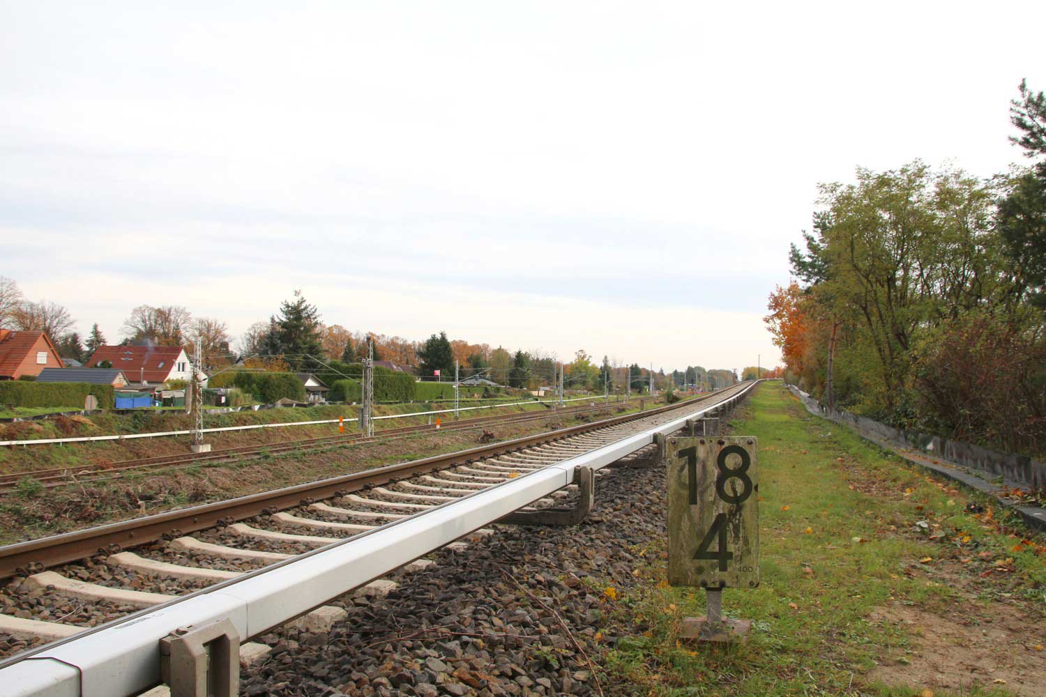 km 18,4 (links) gehört zur Dresdener Bahn (6135)