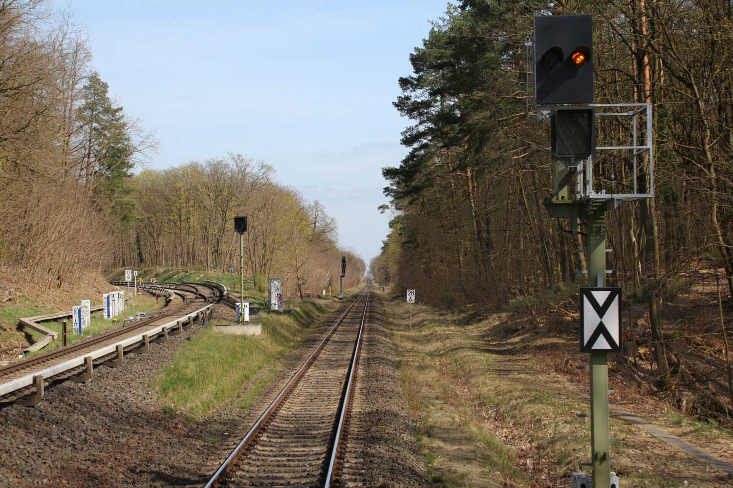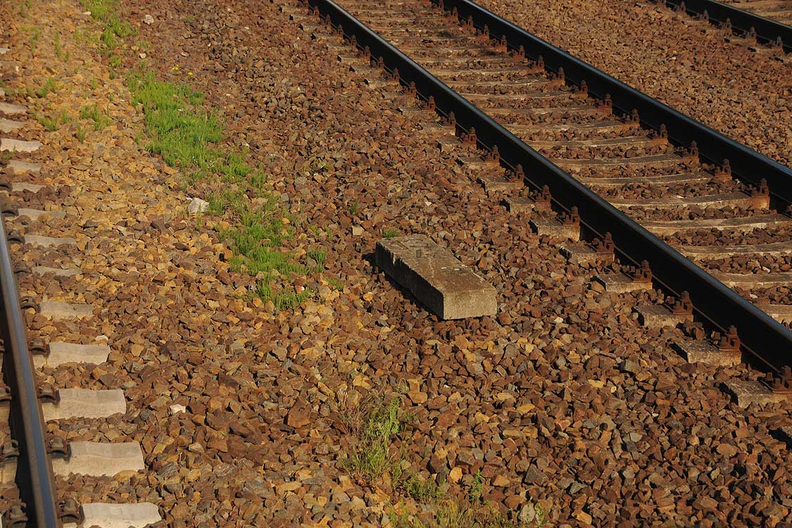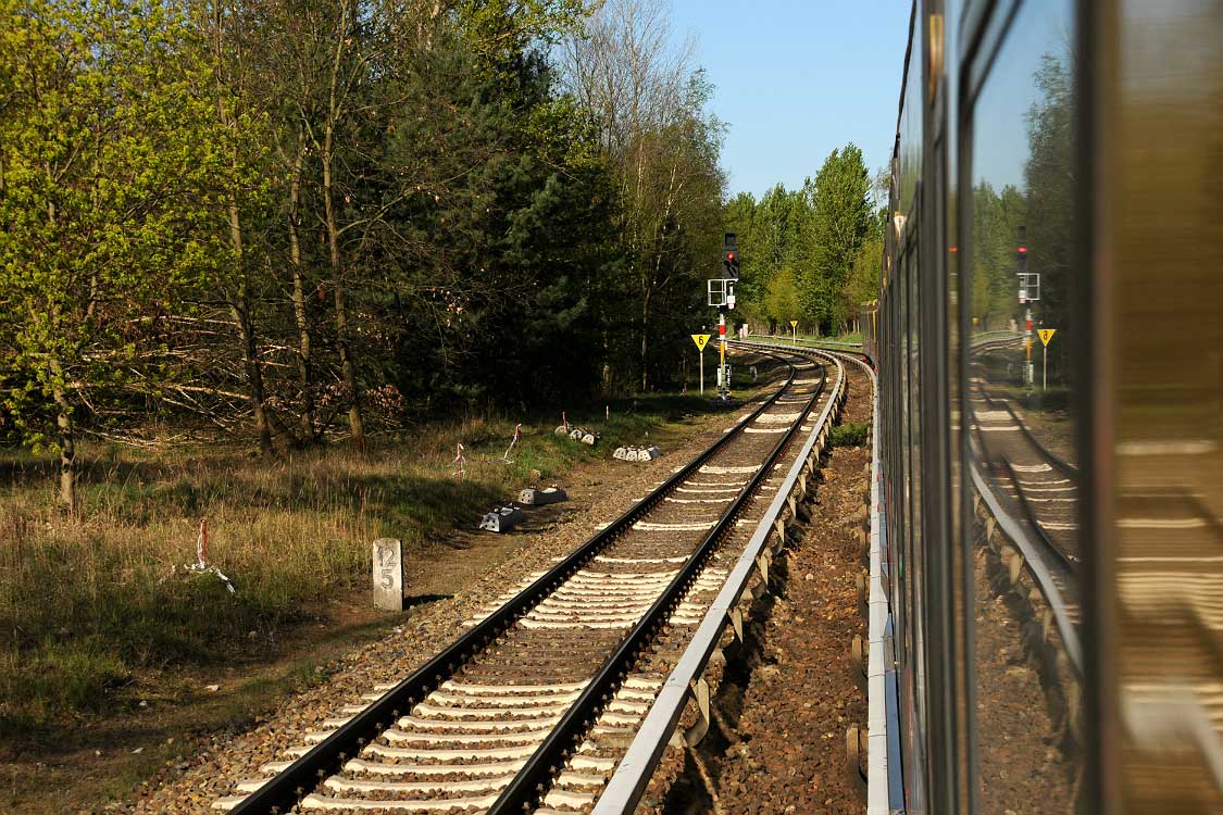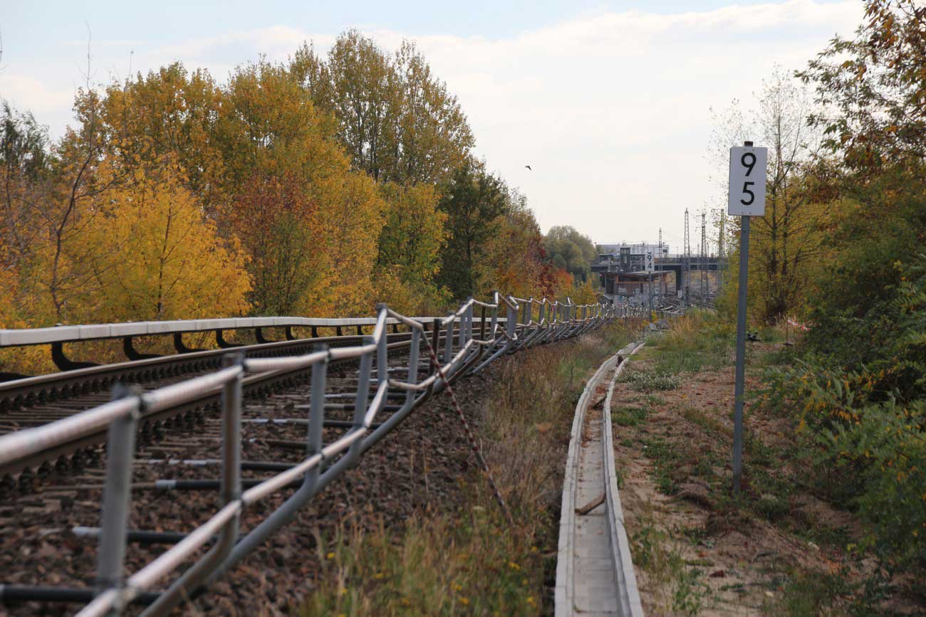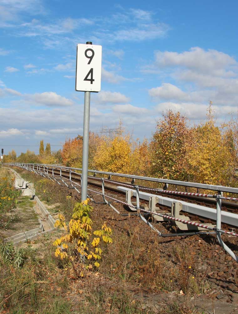 Mittig die beiden Gleise der Schlesischen Bahn mit km 10,2