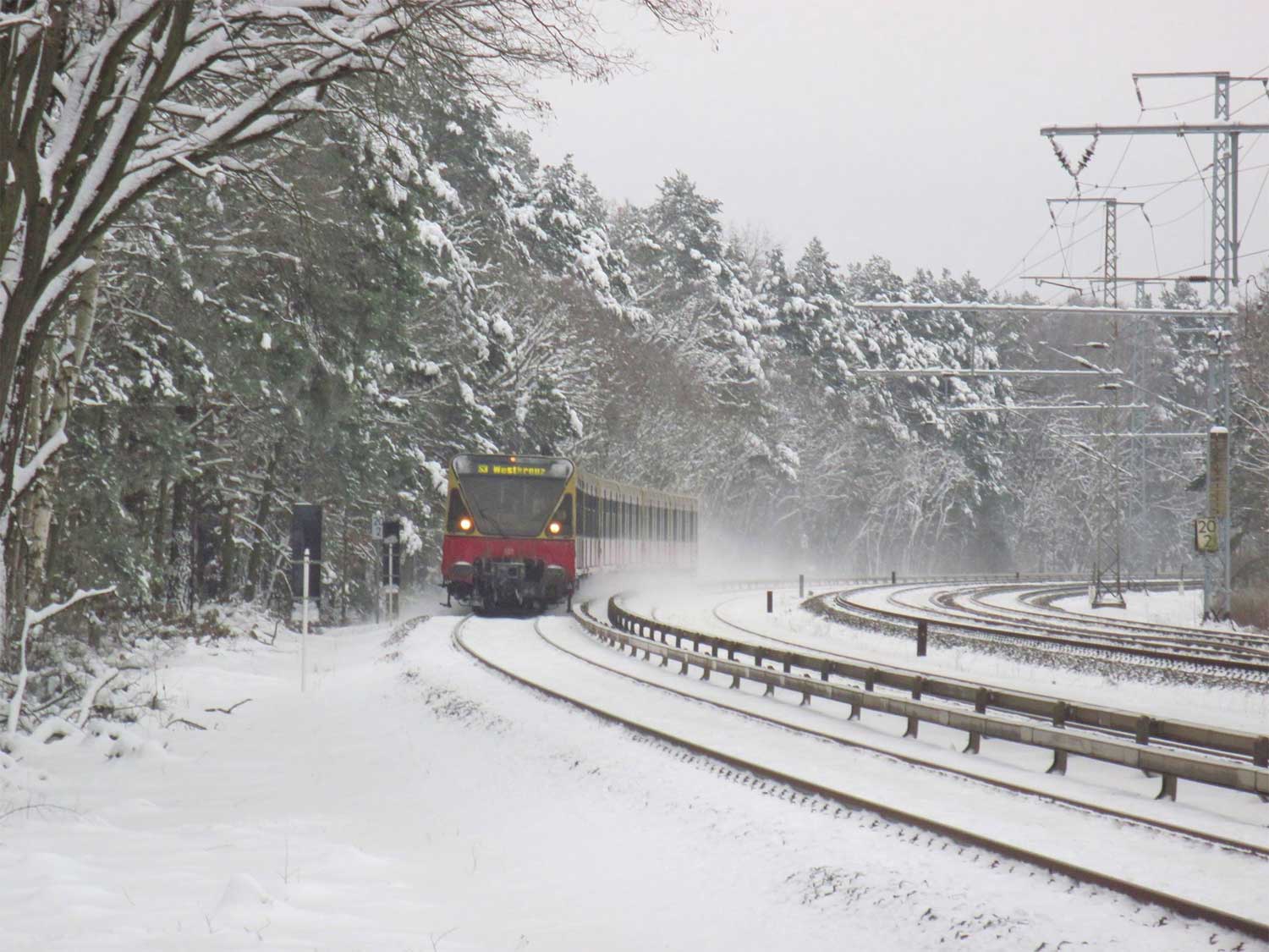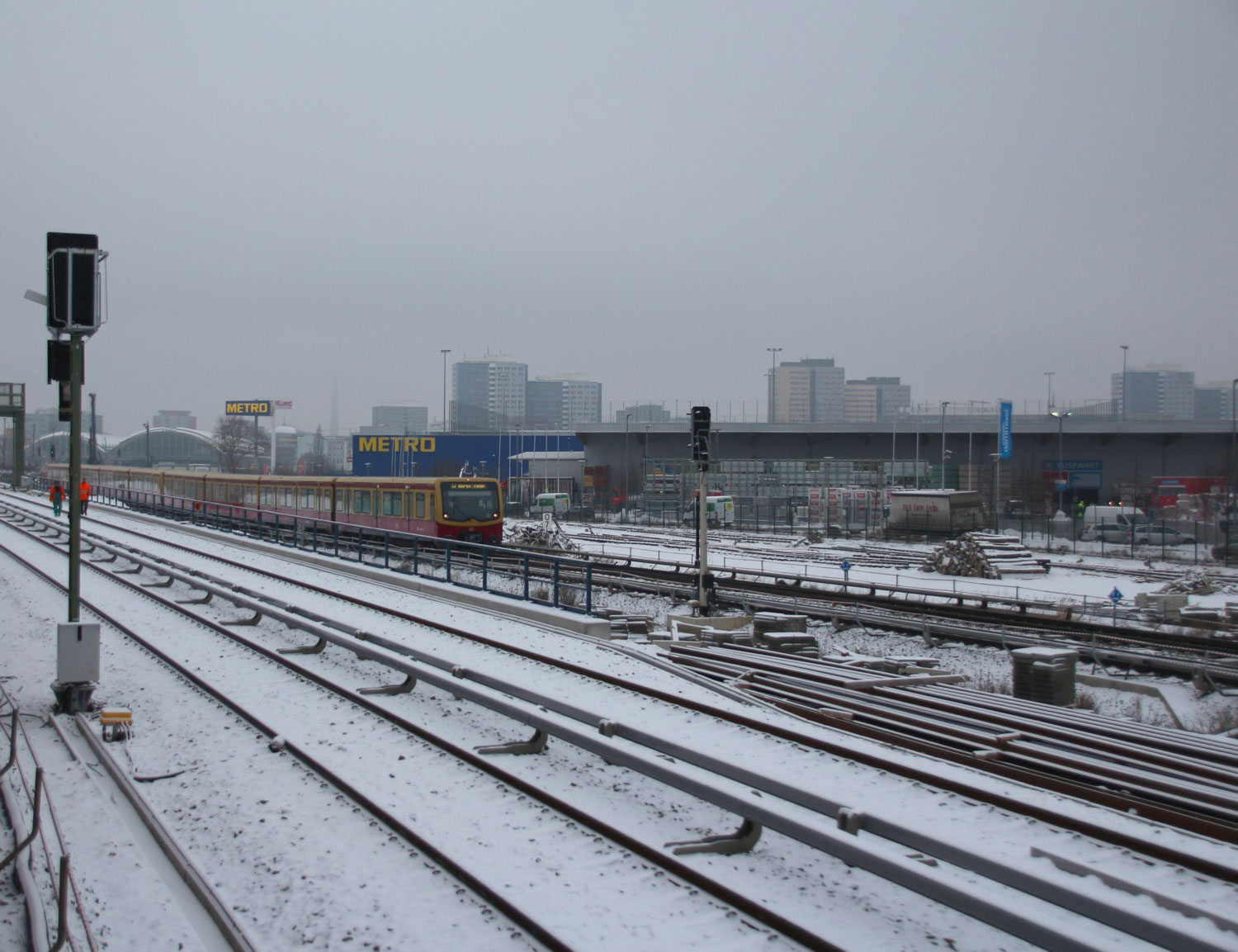 Im Vordergrund die S-Bahn-Strecke Berlin Ostbahnhof (S-Bahn) 0,0 - Erkner (S-Bahn) 24,38 (6004)