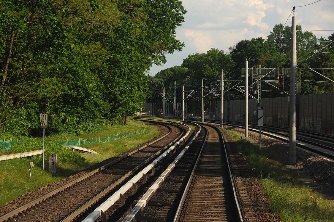 Links die beiden Gleise der Schlesischen Bahn