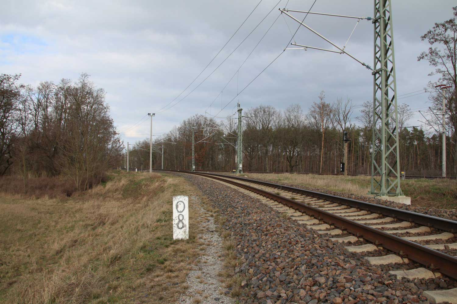 km 0,8 der Verbindungsstrecke Falkenberg (Elster), Stw B 20, W 260; km -0,102 - Stw. W 2 - [Falkenberg (Elster), Stw W 5, W 703; km 1,597] (6843)