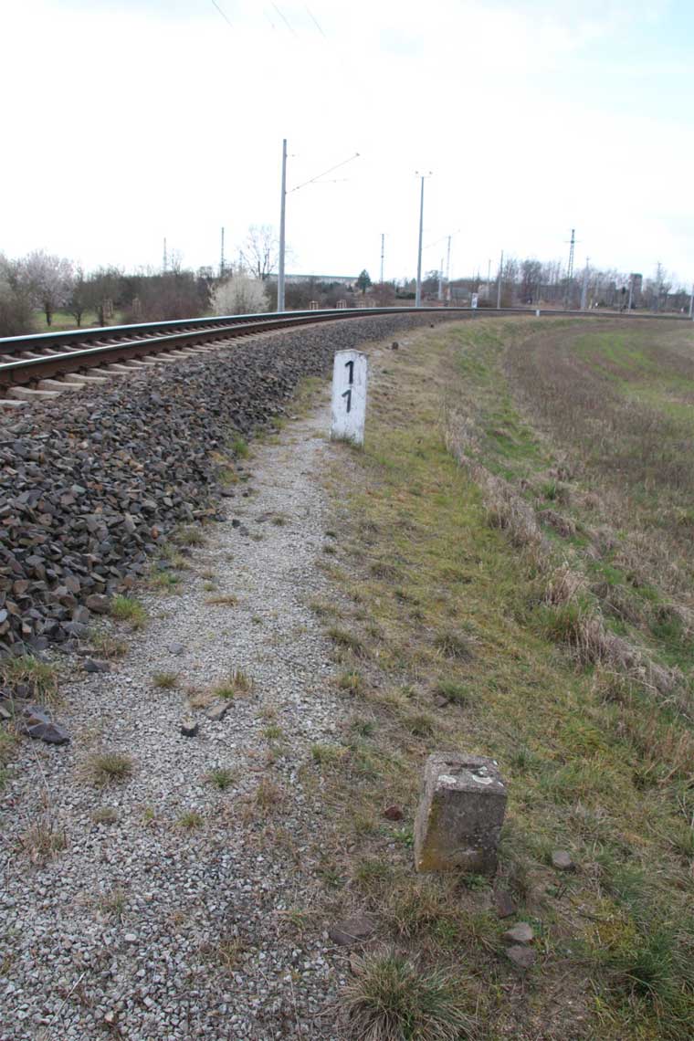 Links km 0,6 und km 0,7 der Verbindungsstrecke