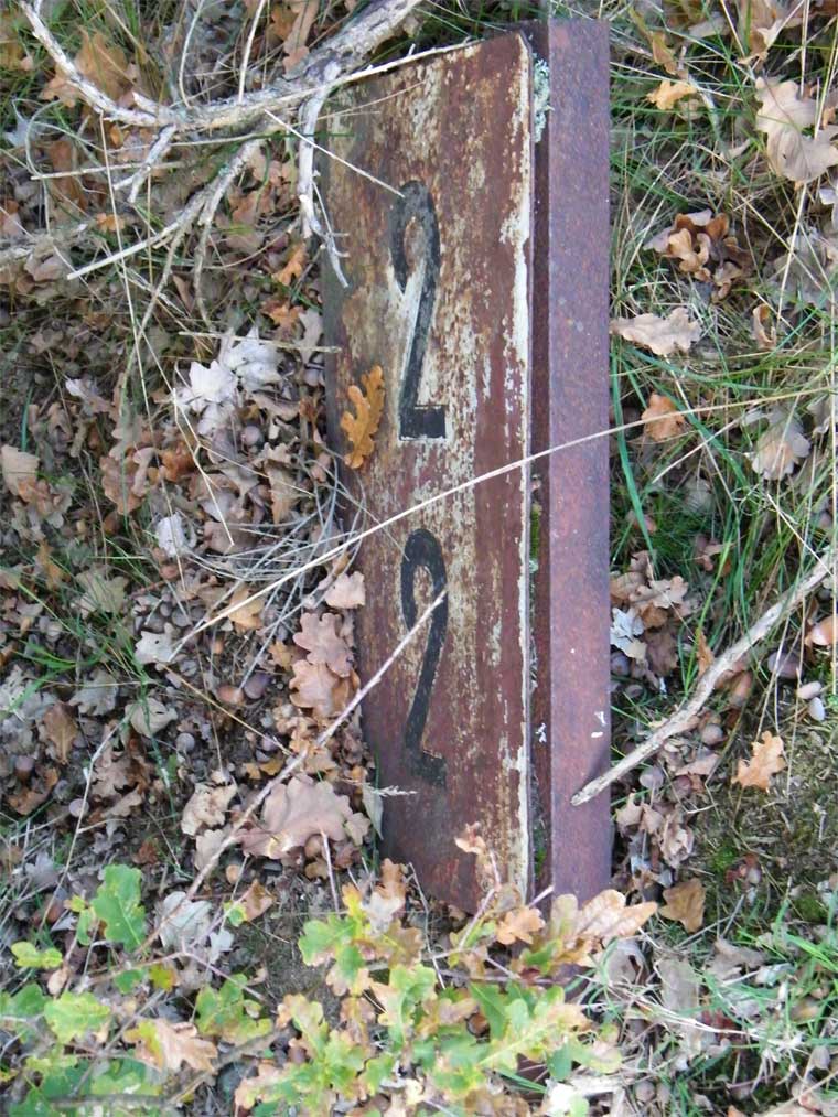 Der Stein zeigte ursprünglich km 2,5 und wurde mit km 1,7 überpinselt
