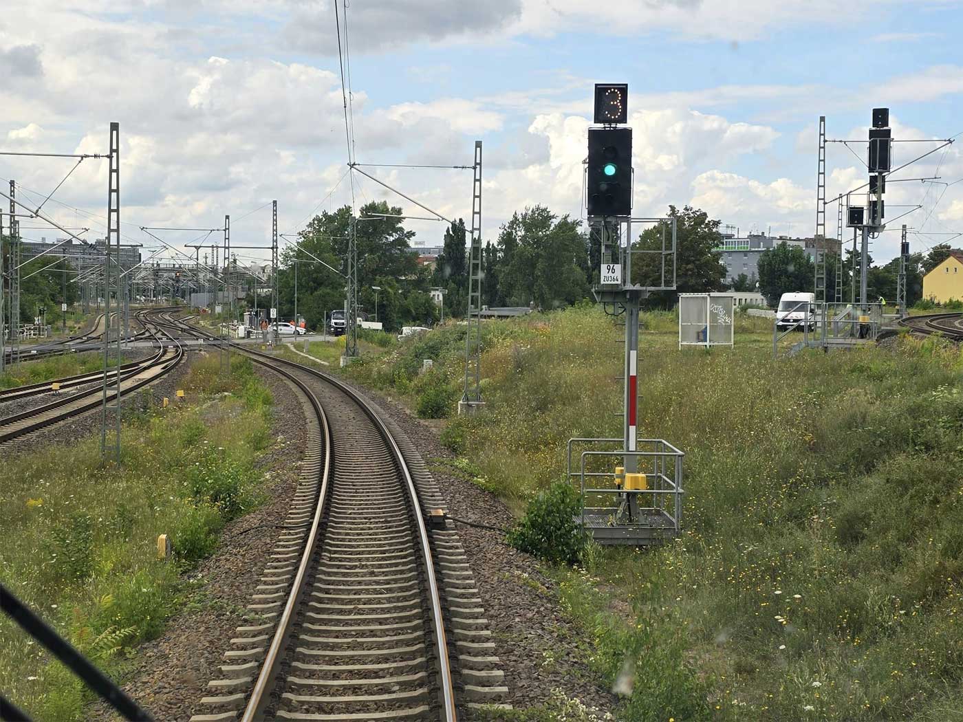 km 0,8 (Gegenrichtungsgleis) - Blick Richtung Halle (Saale) Gbf