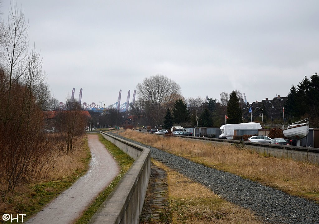 Direkt hinter der Rethe-Hubbrücke (Hohe Schaar)