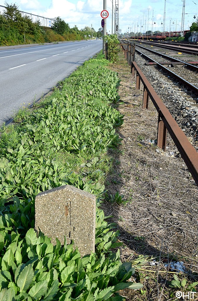 km 30,0 (HBS) [Veddeler Damm, Weiche HBS 004] liegt etwa bei km 207,5 (HBS) der Strecke