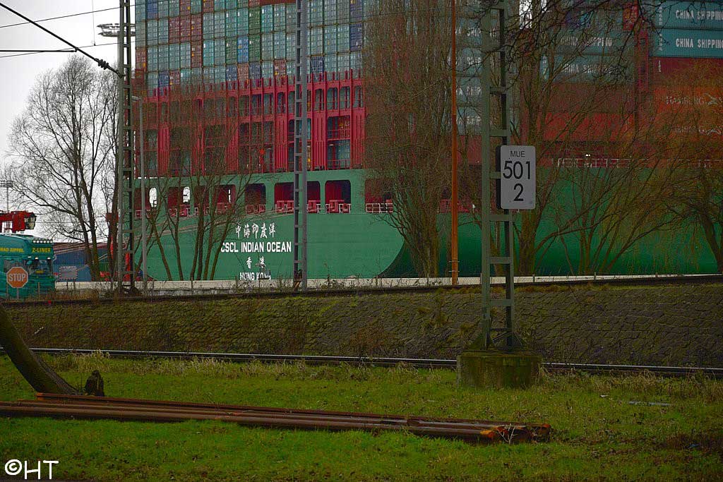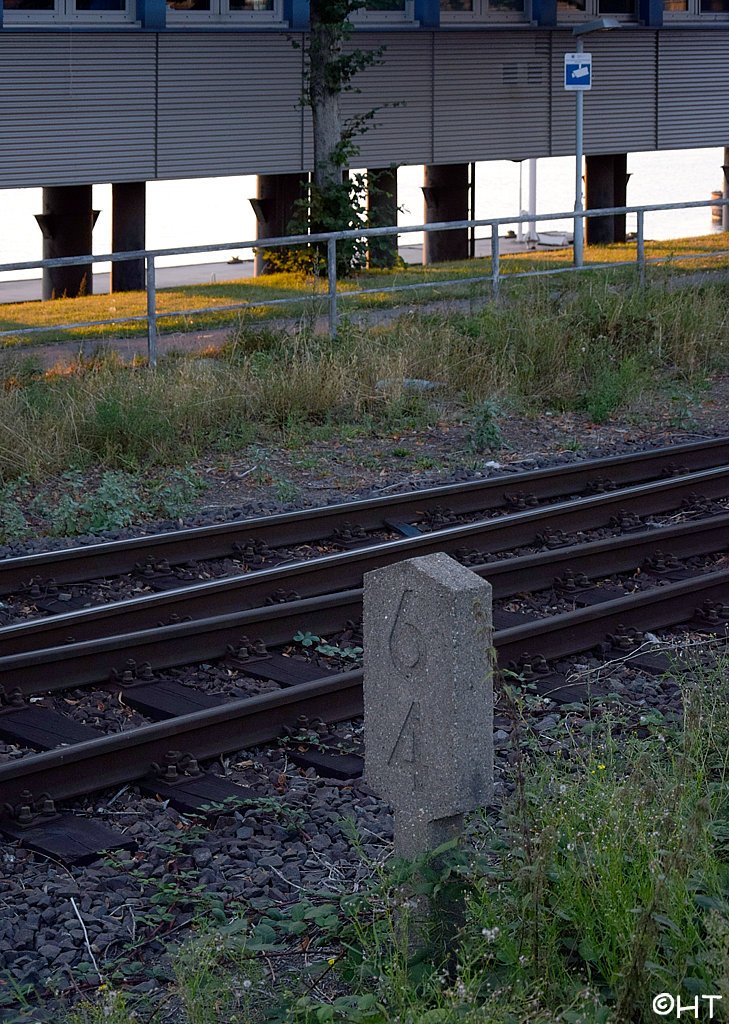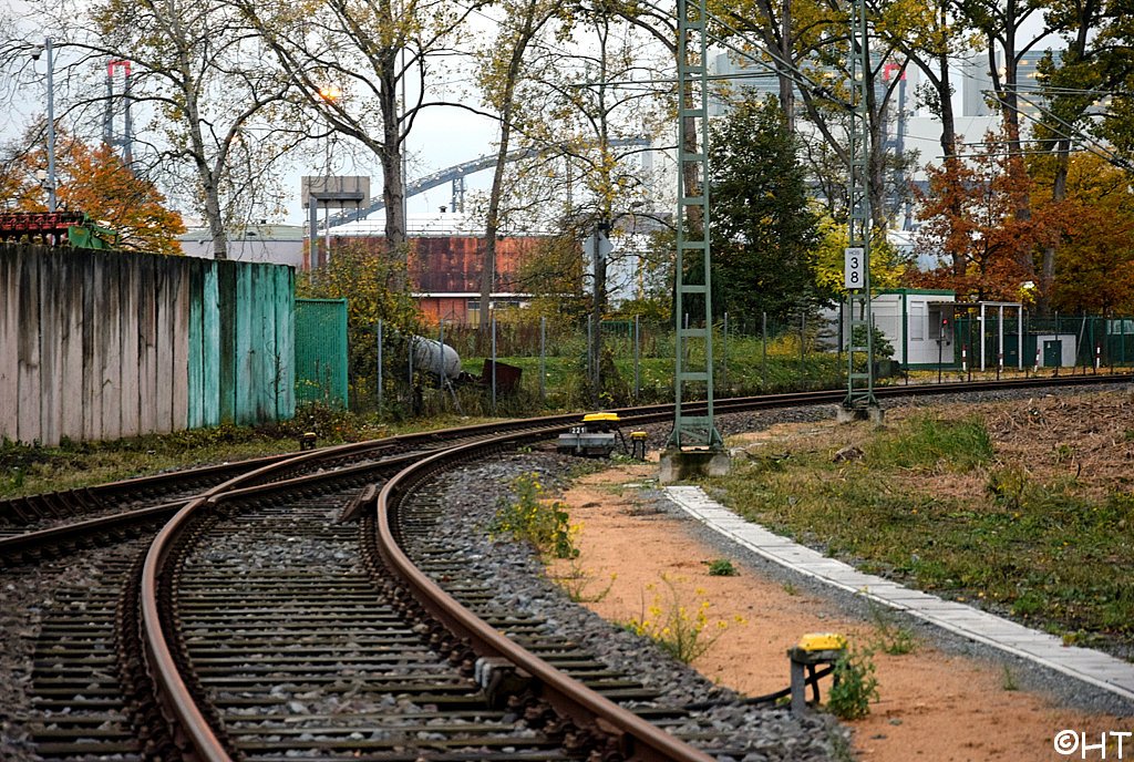 Im Vordergrund das Gleis der Hafenbahn, etwa km 30,35