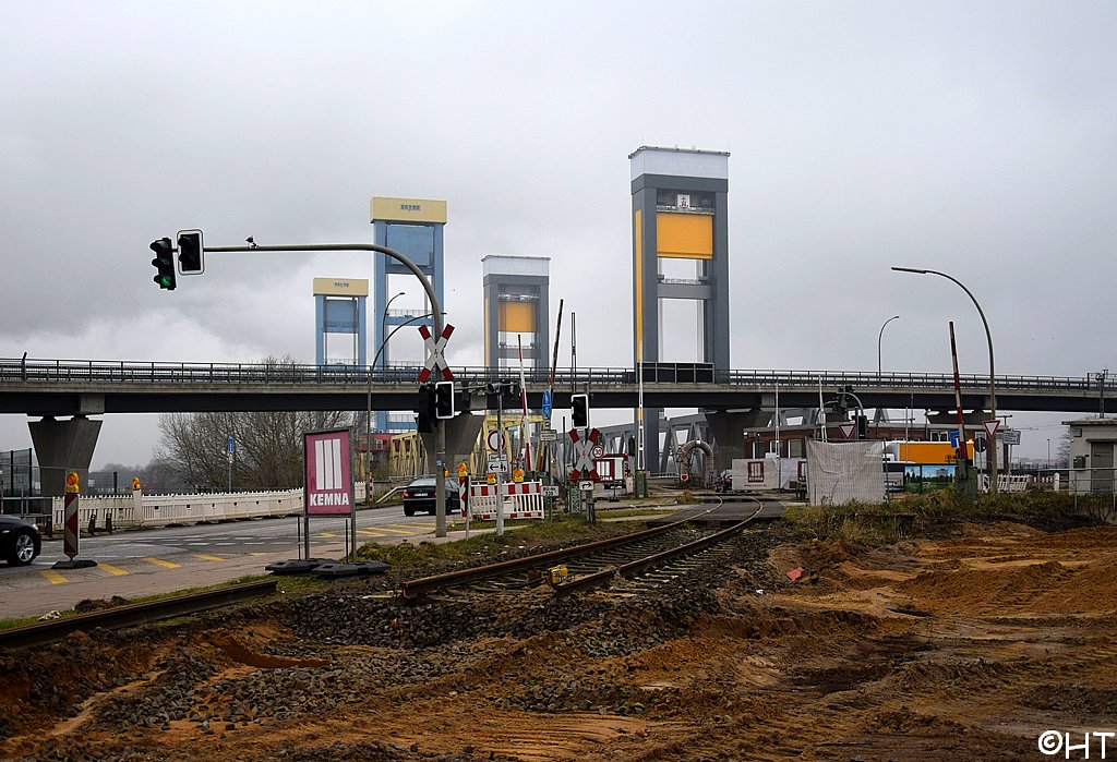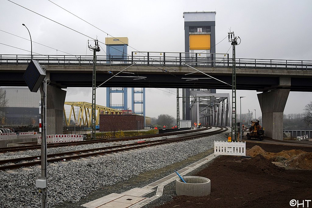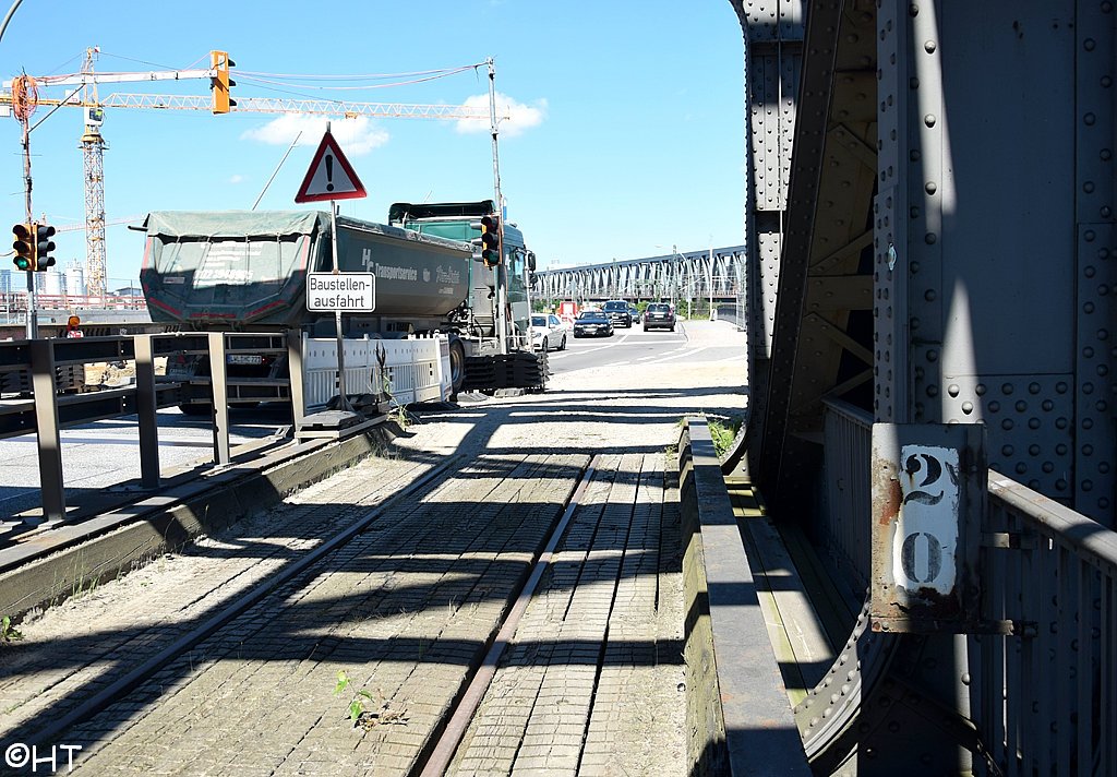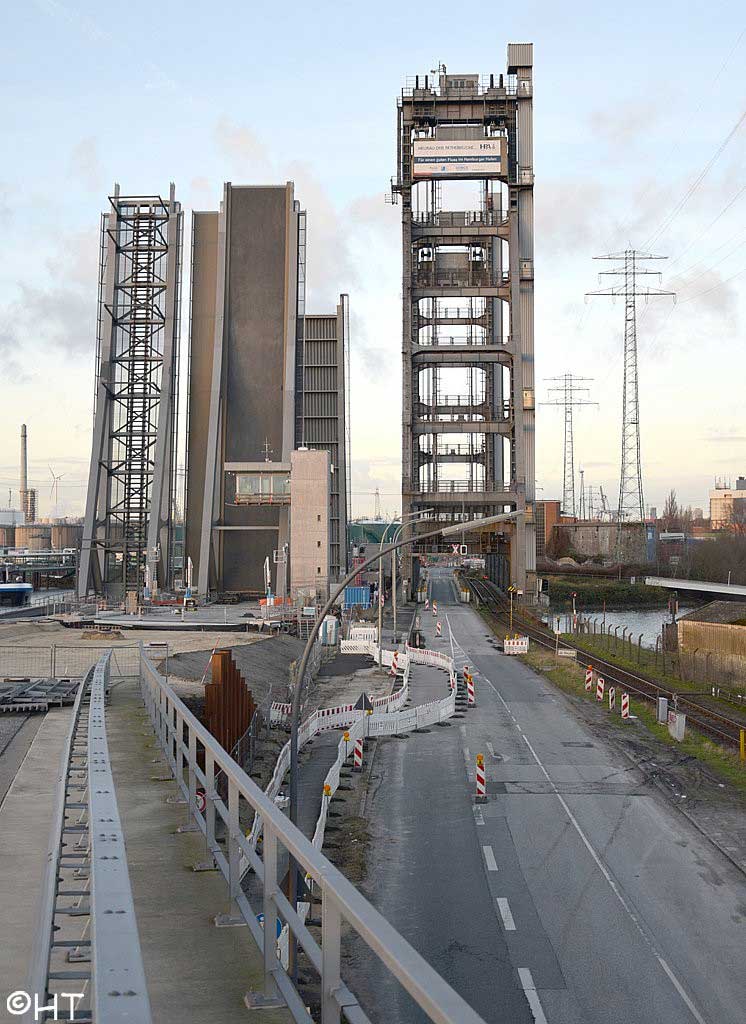 Im Hintergrund die Rethehubbrücke und die neue Retheklappbrücke