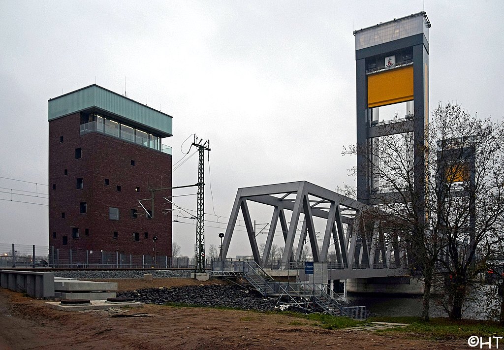 Retheklappbrücke (links) und Rethehubbrücke (rechts)