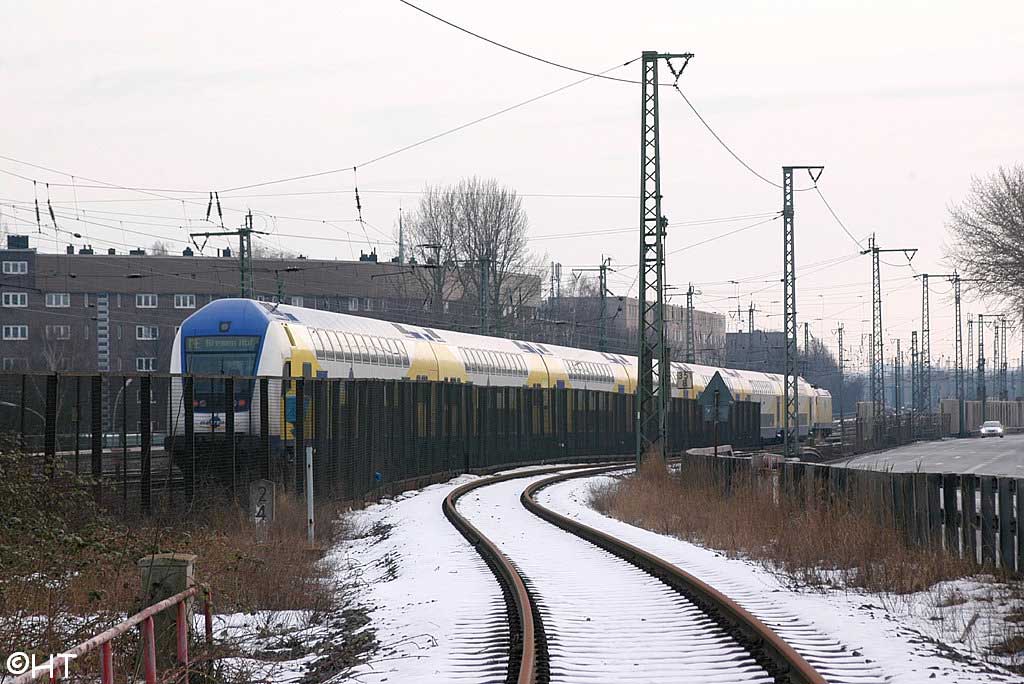 Abzw Meckelfeld 0,0 - Hamburg-Harburg 4,80 - Abzw Hamburg Süderelbbrücke 7,51 - Abzw 11,34 - Infrastrukturgrenze DB/Hafenbahn km 11,780 = km 206,791 (HBS) - Hamburg Süd 208,7 (HBS) - Reihersteigbrücke - Grenze HBS/ROE ca. 209,8 - Gleisgruppe Roeloffsufer (km 210,2 - km 211,0) - Grenze ROE/NHF ca. 211,2 - Grenze NHF/RET ca. 211,8 - Rethehubbrücke/Retheklappbrücke (km 212,6 - km 212,8) - Grenze RET/HOS ca. 212,8 - Hohe Schaar (km 213,0 - km 214,4) - Einmündung bei Reihersteigschleusenbrücke (N/W)