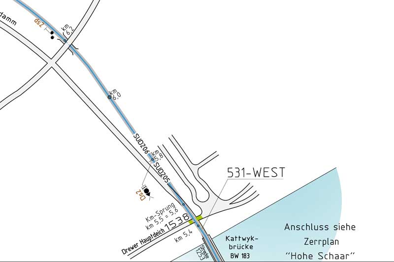 km 6,0 (neu) an der Kattwykbrücke