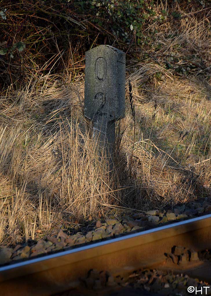 Nach dem Bahnhofsteil Pollhornweg wechselt die Kilometrierung auf REO.