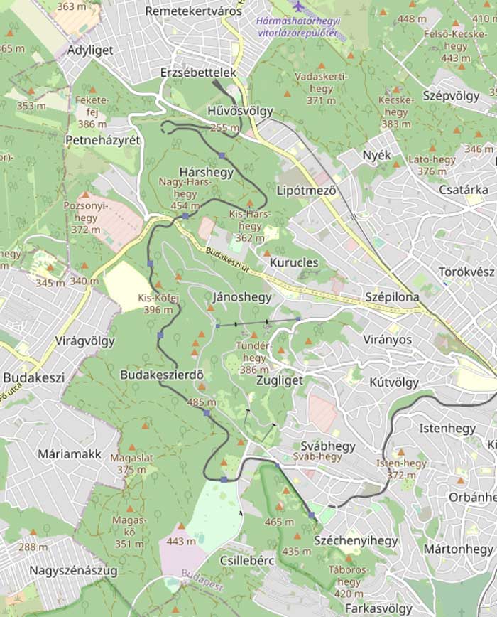 km 9,5 am Kehrtunnel zwischen Hárshegy