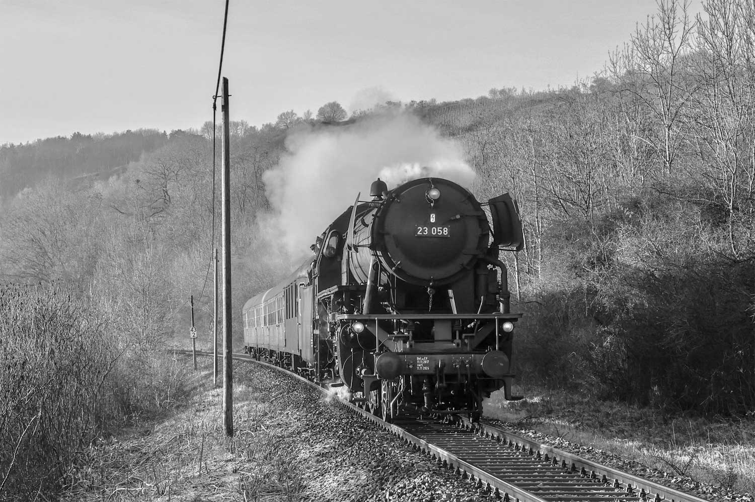 km 2,3 in Unterbalbach - 023 023 mit P 5526 (Crailsheim-Lauda)