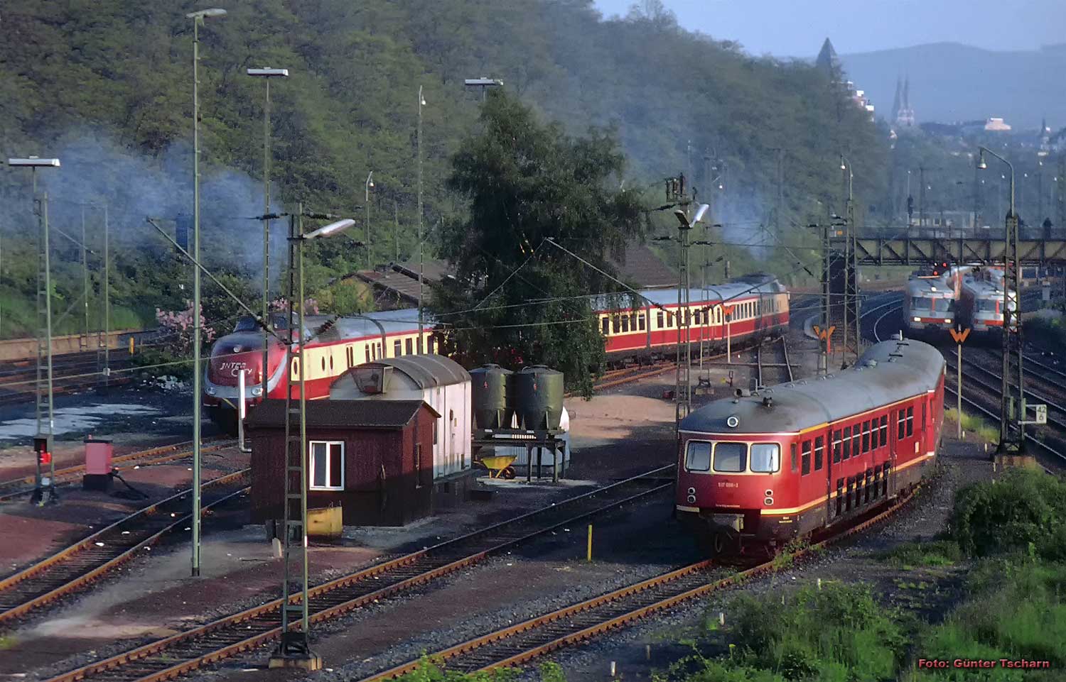 rechts abgehend das Richtungsgleis nach Wiesbaden-Biebrich - Niederlahnstein,
