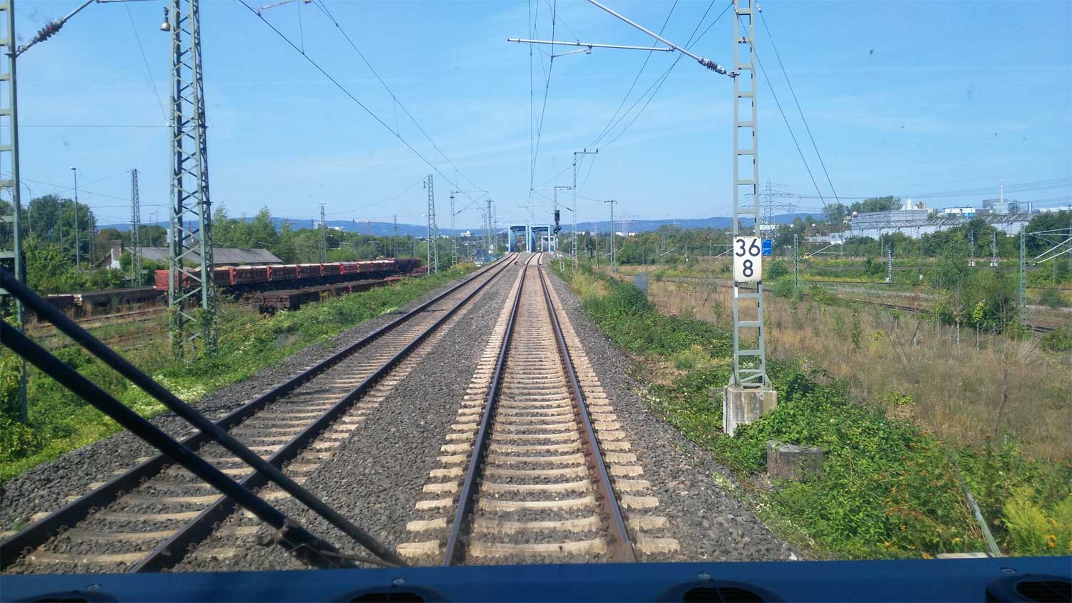 km 38,8 (Gegenrichtungsgleis Strecke 3603, kurzes Gleisstück) zwischen Abzw Stellwerk I (bei Wiesbaden Ost) und Wiesbaden Hbf - Blick Richtung Frankfurt (Main)