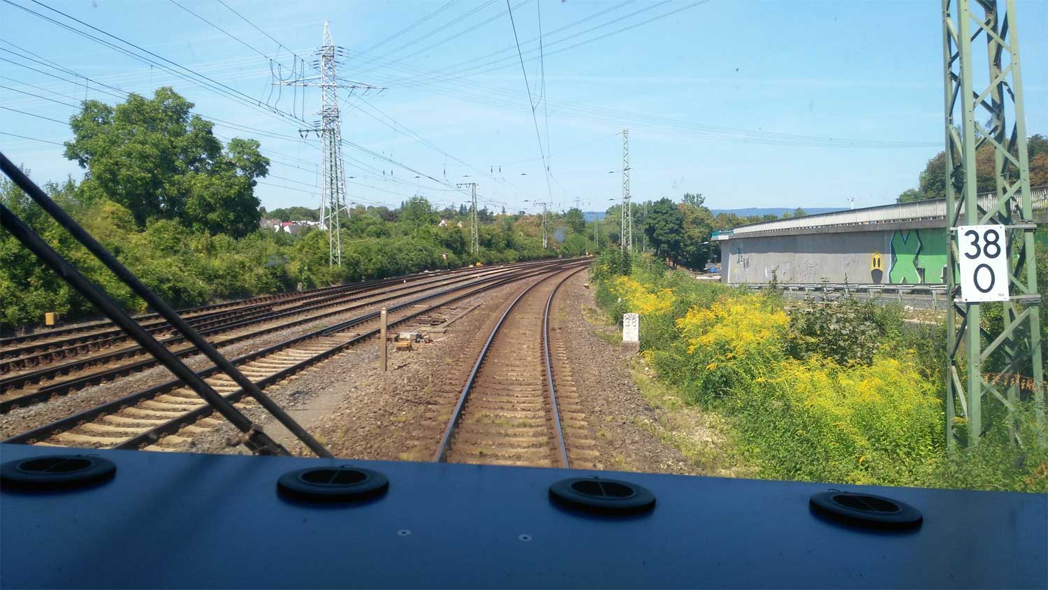 km 38,0 (Stein und Tafel) zwischen Abzw Stellwerk I (bei Wiesbaden Ost) und Wiesbaden Hbf