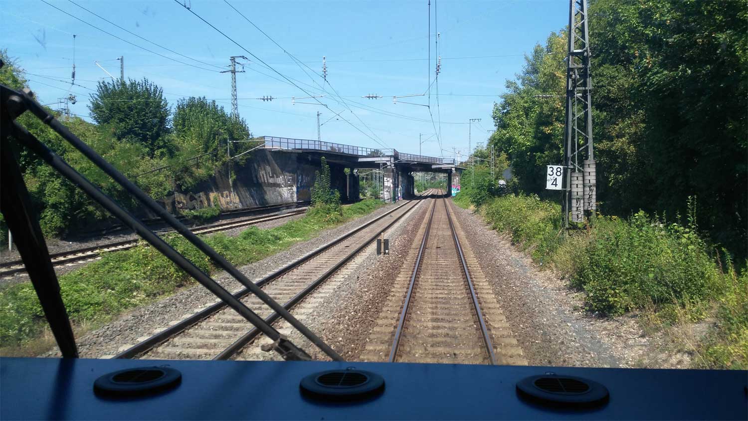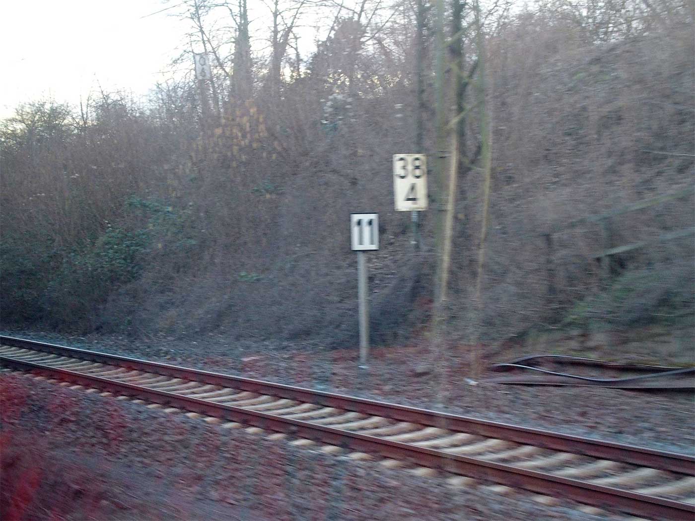 km 38,0 (Stein und Tafel) zwischen Abzw Stellwerk I (bei Wiesbaden Ost) und Wiesbaden Hbf - Blick Richtung Wiesbaden Hbf