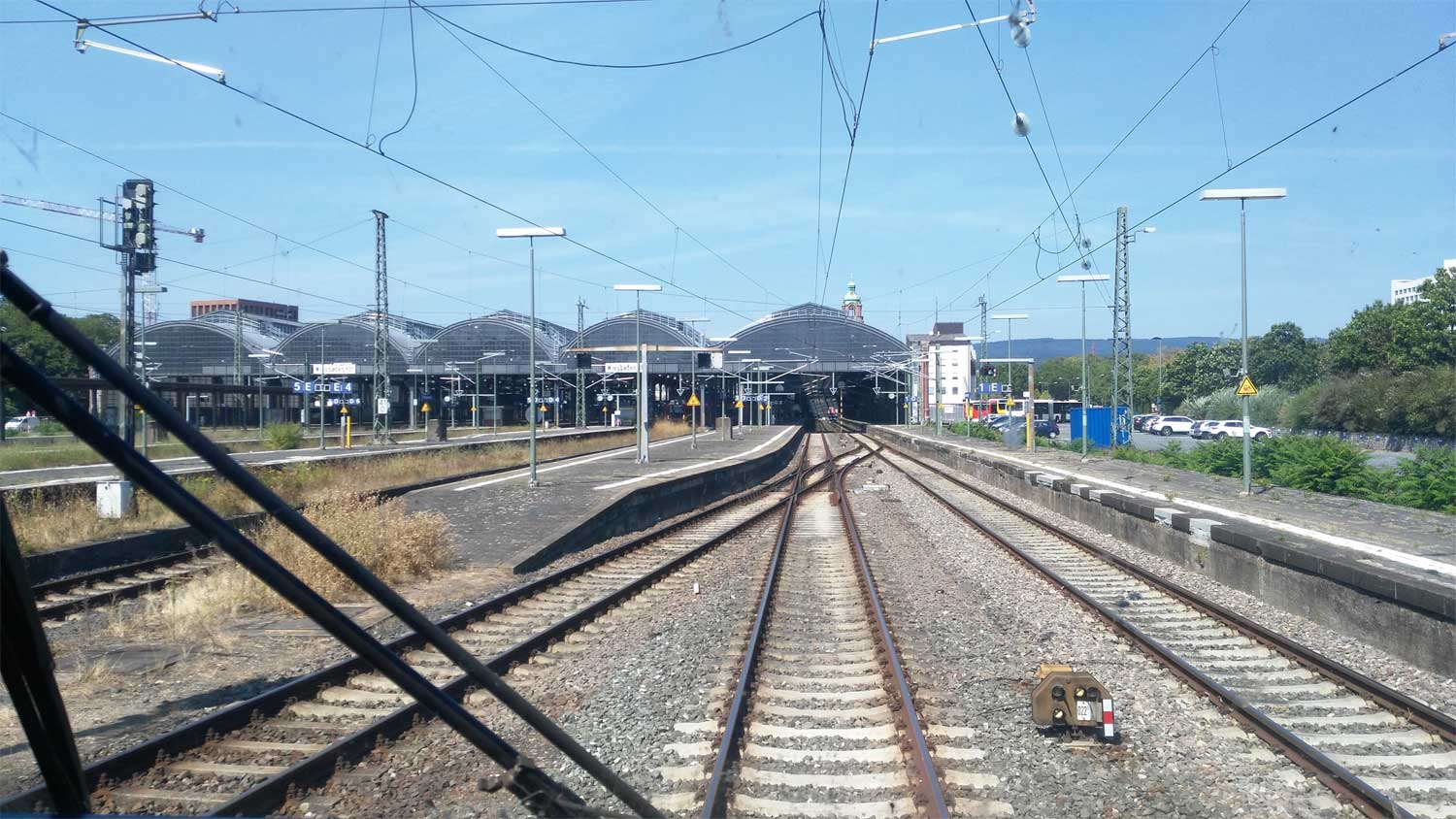 in der Mitte die beiden Gleise nach Wiesbaden Hbf
