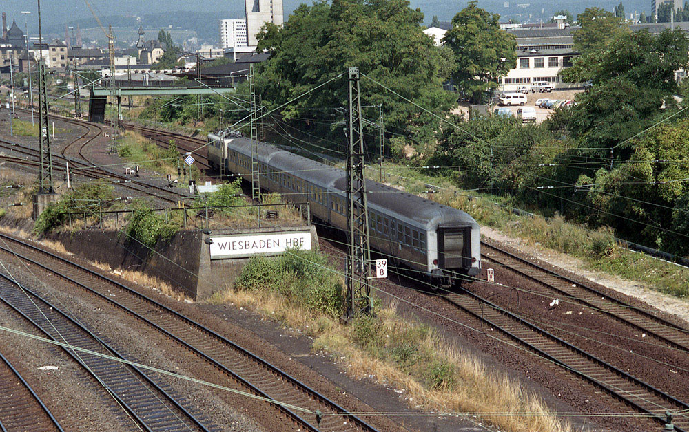 Der Zug befindet sich etwa bei km 39,4 (kommend) von Abzw Stellwerk I (bei Wiesbaden Ost)
