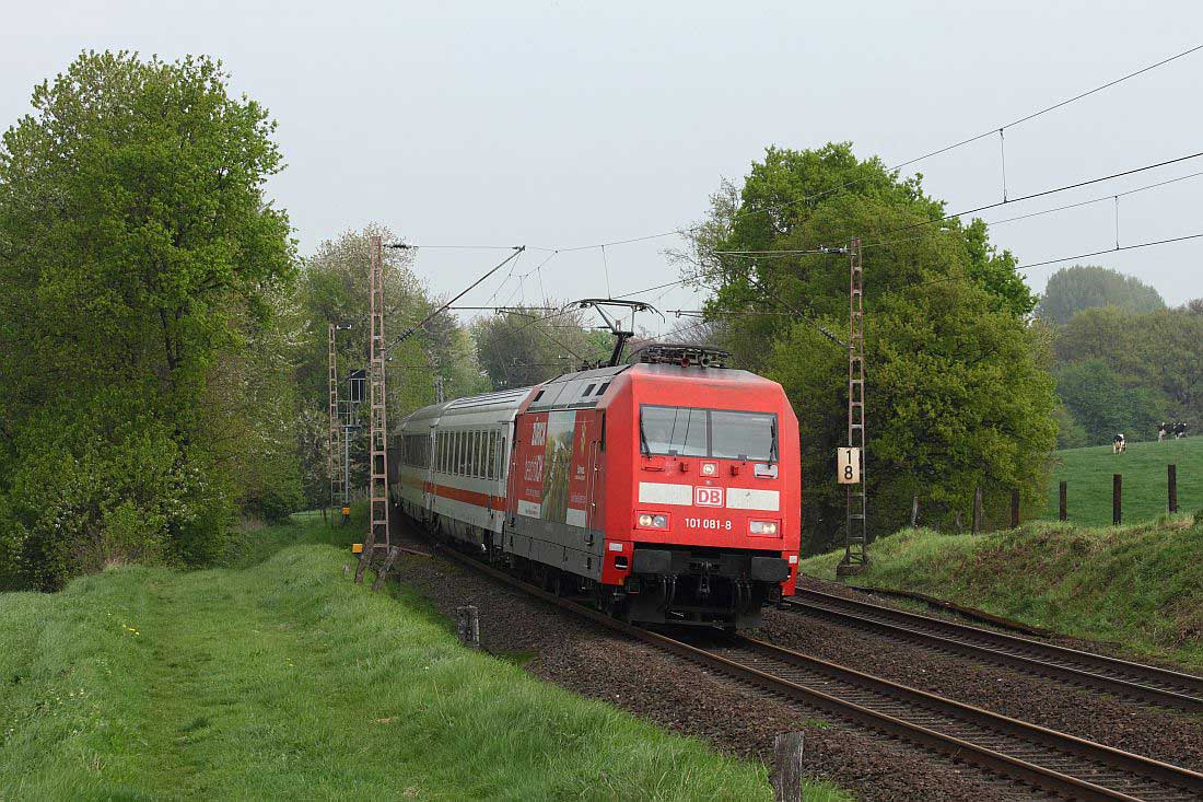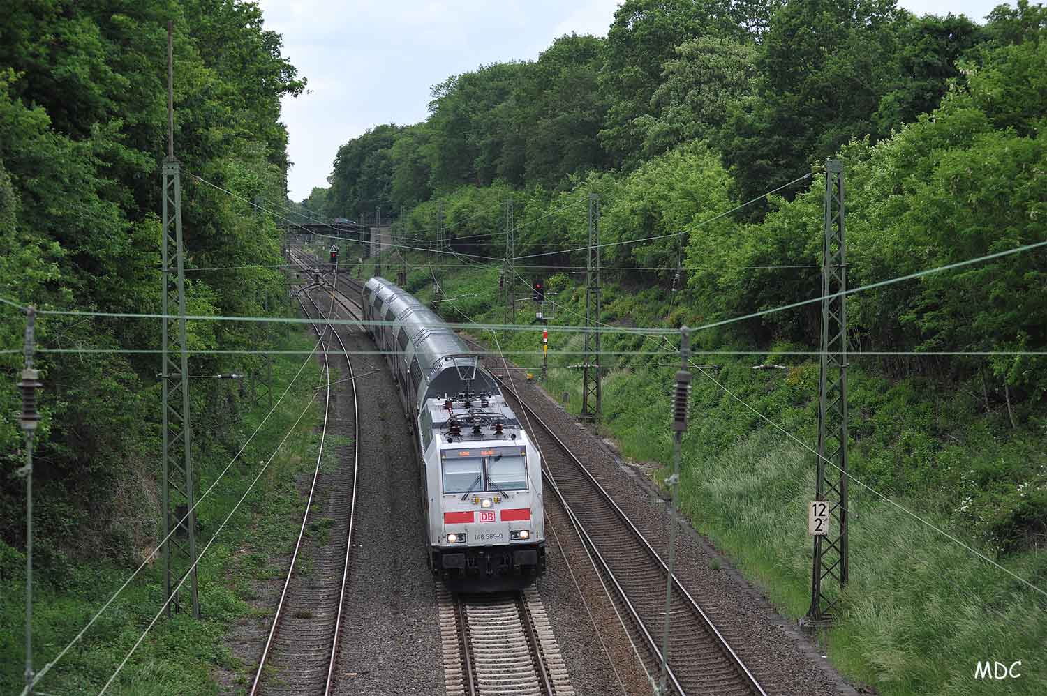 km 1,8 (Stein links, Tafel rechts) zwischen Gruiten und Haan - 181 211 mit PbZ 2471 [Dortmund Bbf - Frankfurt (M)]