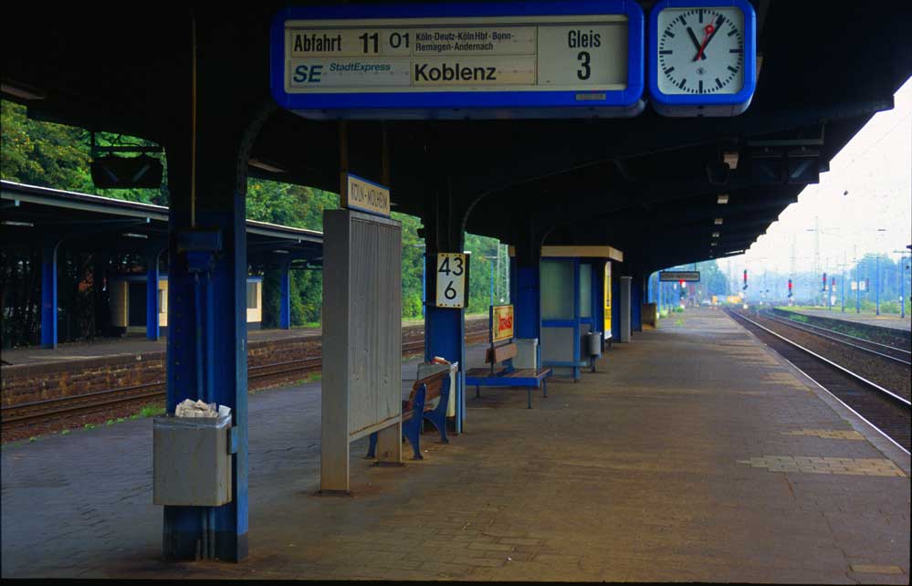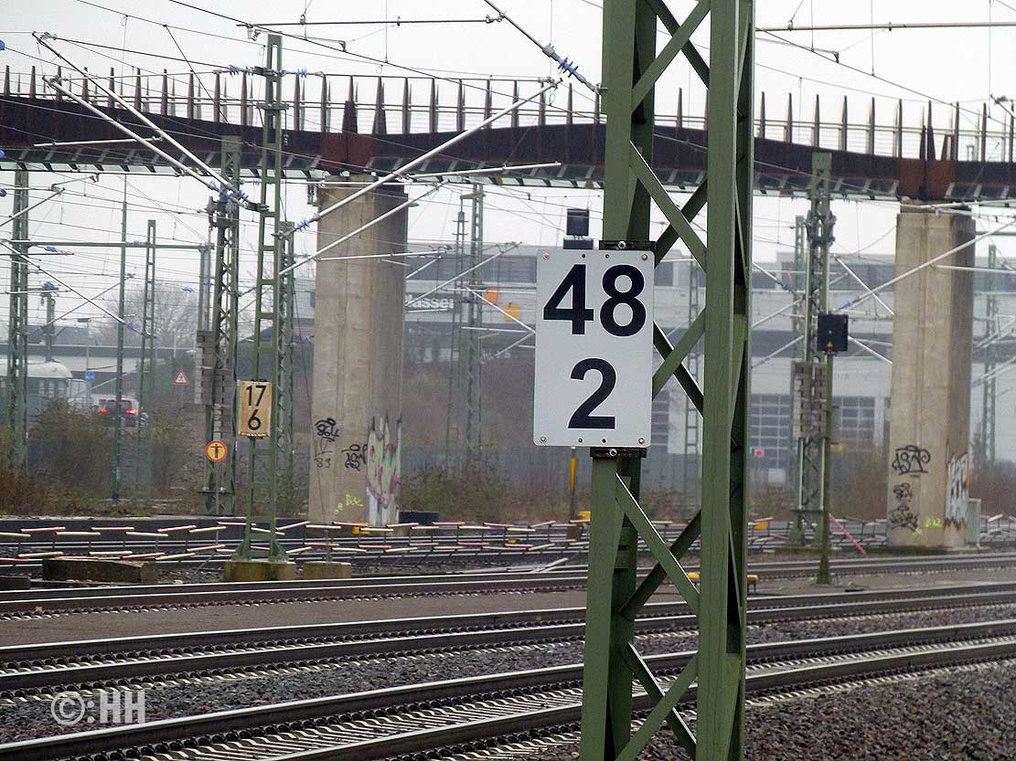 Hier die oben erwähnte Tafel km 44,0 in Köln-Mülheim mit Blickrichtung Köln