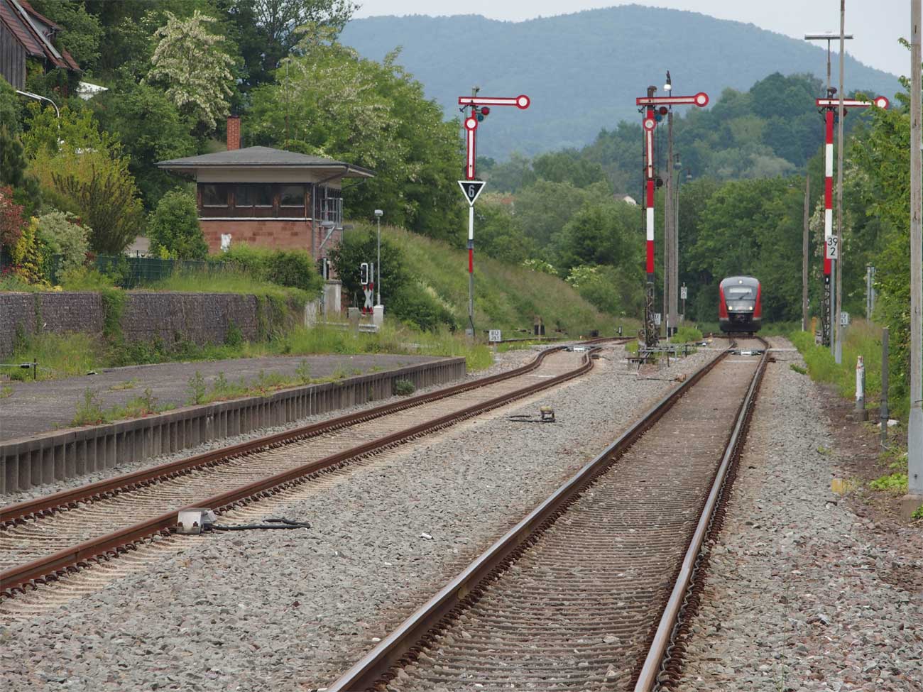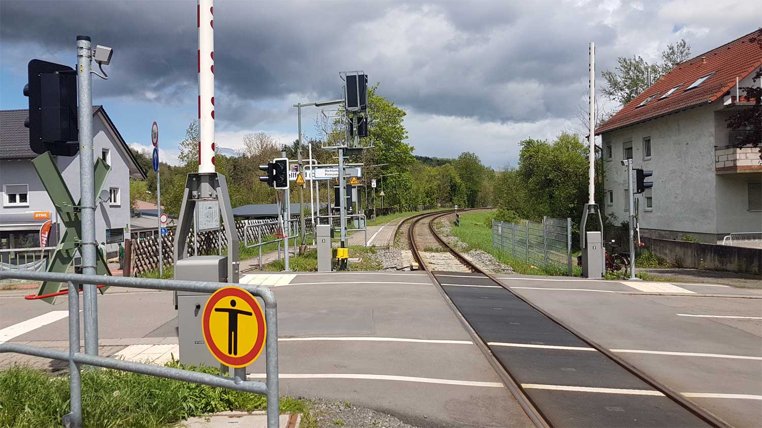 km 72,0 in Pirmasens Nord mit Stellwerk Pss - Blick Richtung Germersheim