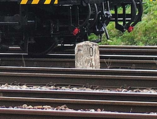 km 0,0 der Strecke Zweibrücken Hbf 0,0 - Bierbach 6,87 - Reinheim (Saar) 24,27 - Grenze Deutschland/Frankreich 25,087 - Sarreguemines (Saargemünd) 36,80 | ||