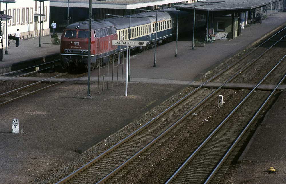 Landau (Pfalz) Hbf | 24,51 | km 18,43 der Strecke Neustadt (Weinstr) Hbf 0,02 - Landau (Pfalz) Hbf 18,43 - Kapsweyer 41,17 - Grenze Deutschland/Frankreich 44,618 = (km 60,028 - Wissembourg 57,67 - Vendenheim 0,0) |