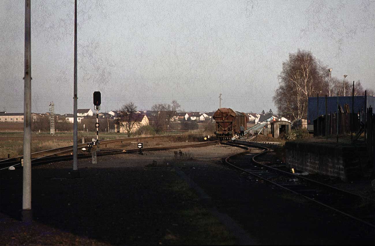km 22,50 der Strecke Schifferstadt 0,015 - Wörth (Pfalz) 49,87 - Berg (Pfalz) 59,48 - Grenze Deutschland/Frankreich km 60,959 [= km 56,837 - Lauterbourg (Els) 55,493 - Röschwoog 36,496 - Strasbourg Ville 0,0] | ||