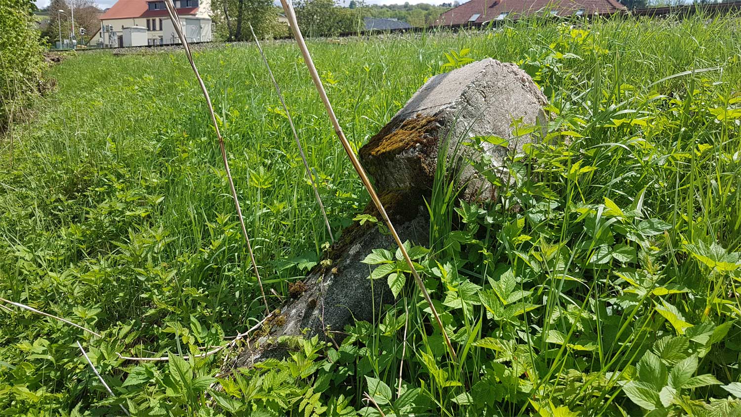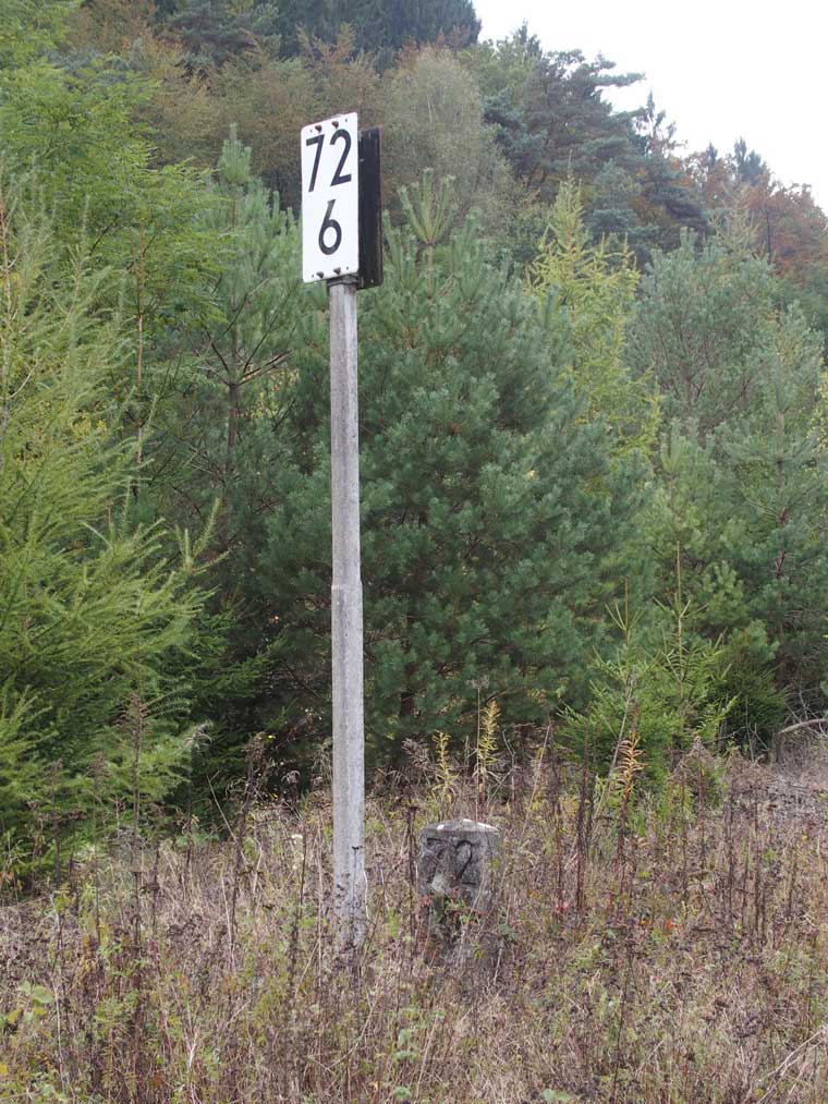 km 72,6 (Tafel und Stein) in Pirmasens Nord - Blick Richtung Germersheim