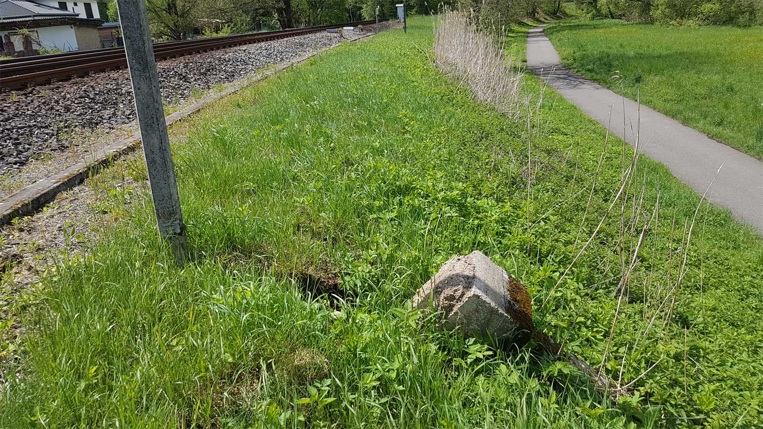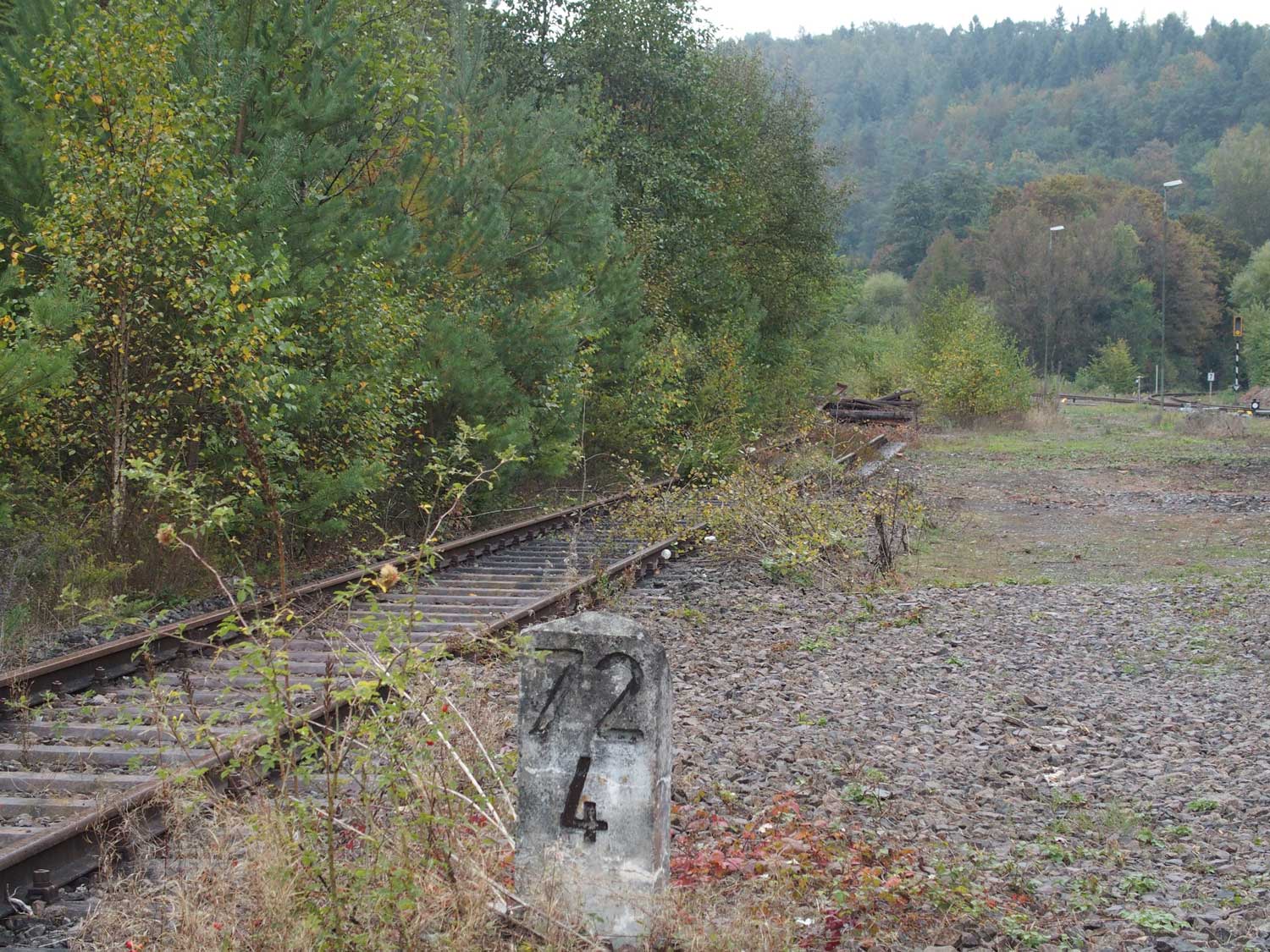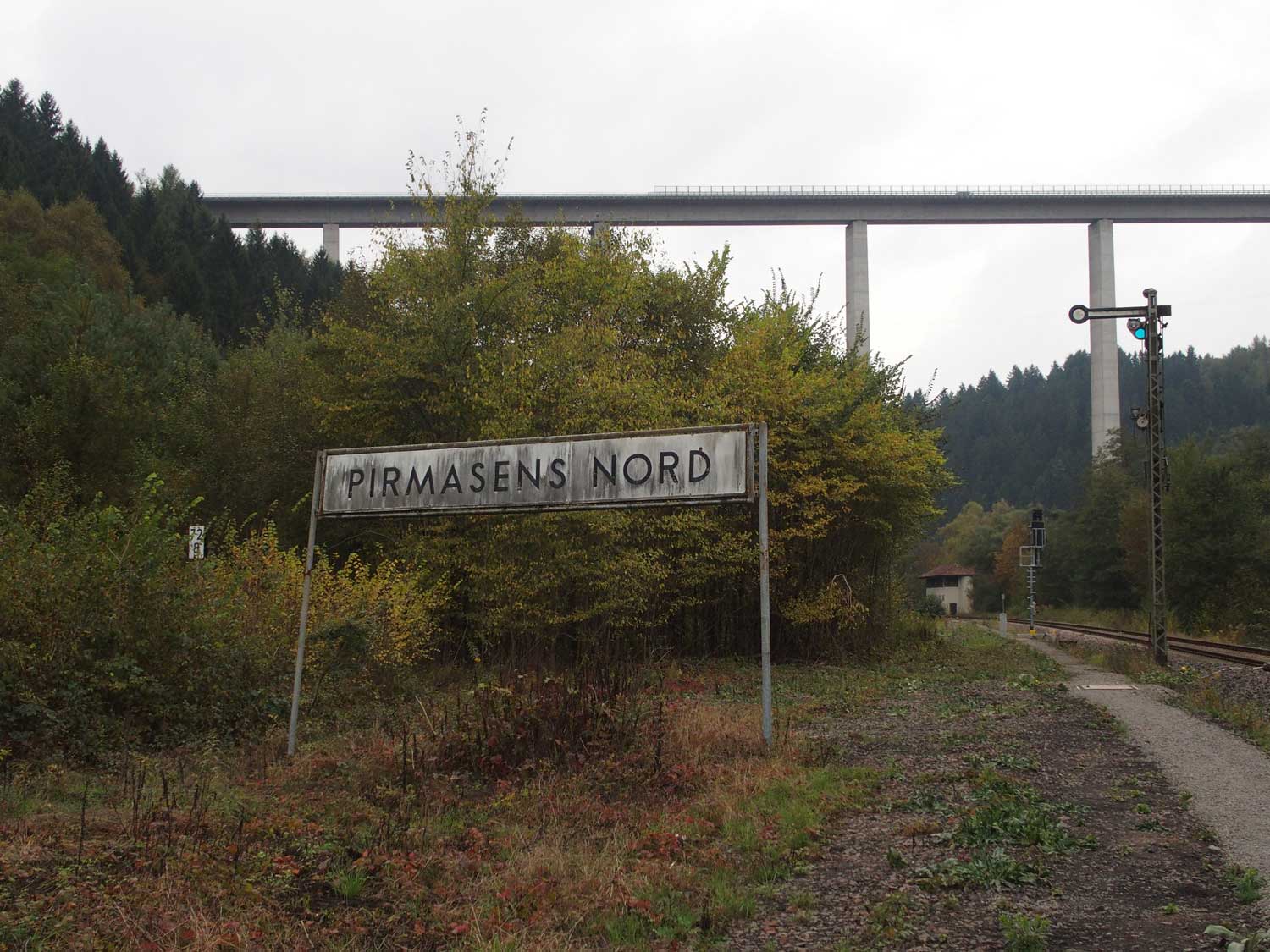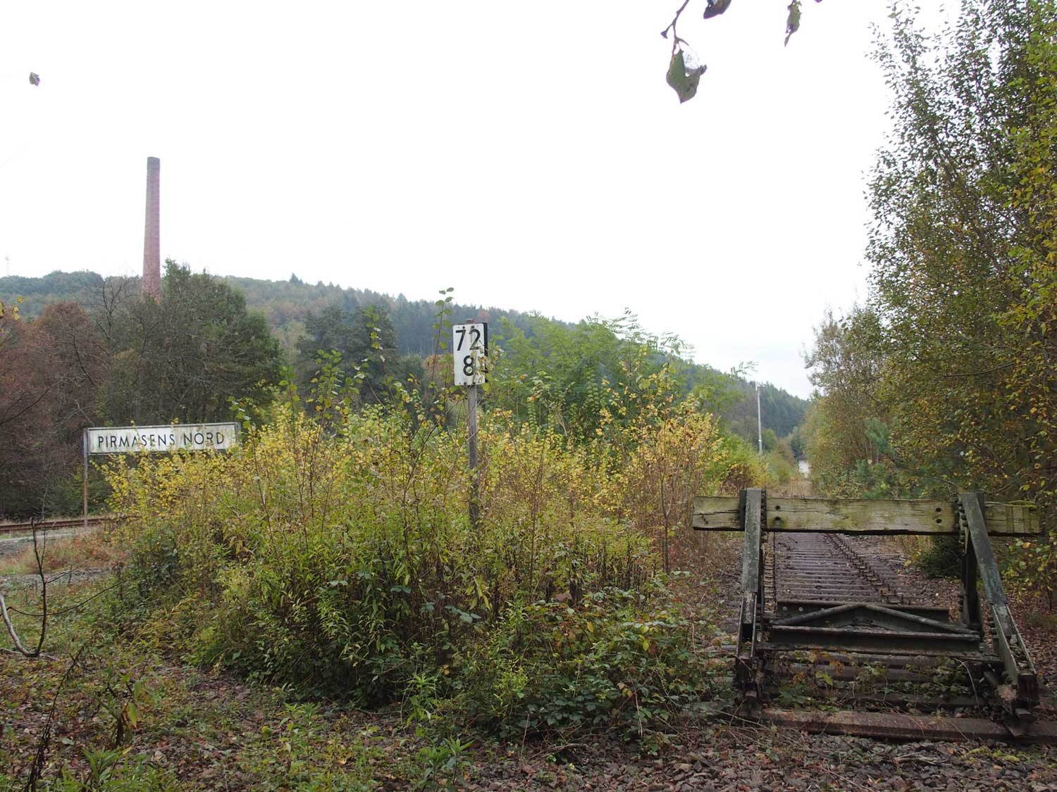 km 72,2 (Stein und Tafel) in Pirmasens Nord - Blick Richtung Rohrbach