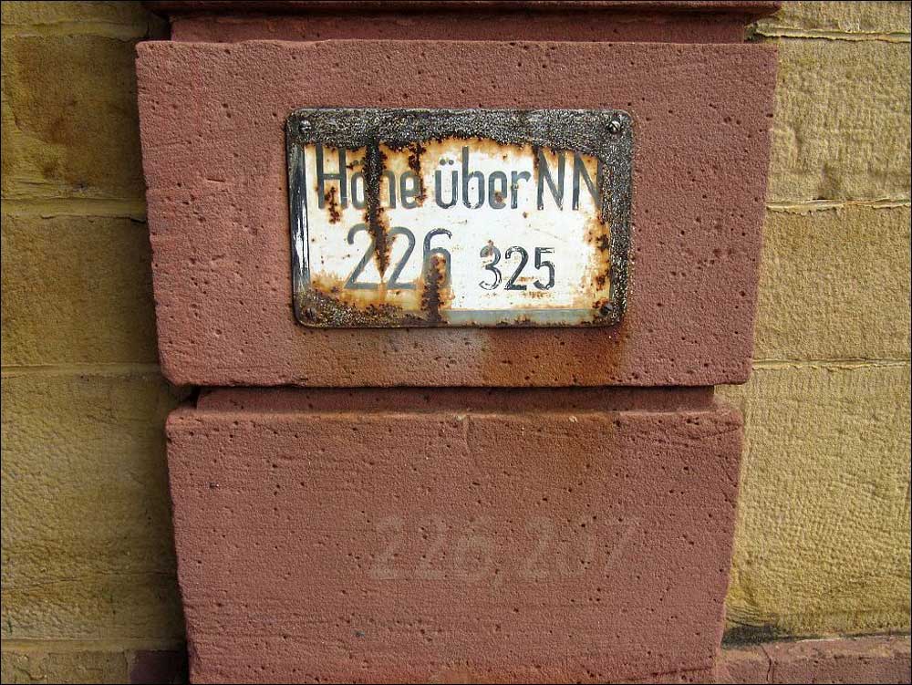 Höhenmarken (226,325 m und 226,267 m) in Zweibrücken Hbf