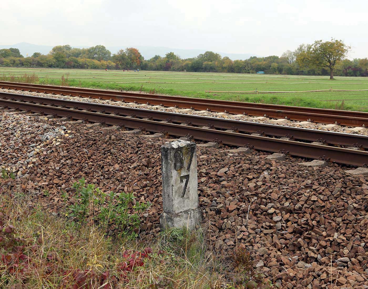 | km 0,02 der Strecke Neustadt (Weinstr) Hbf 0,02 - Landau (Pfalz) Hbf 18,43 - Schweighofen 43,00 - Grenze Deutschland/Frankreich 44,618 = (km 60,0 - Wissembourg 57,7 - Vendenheim 0,0) | ||