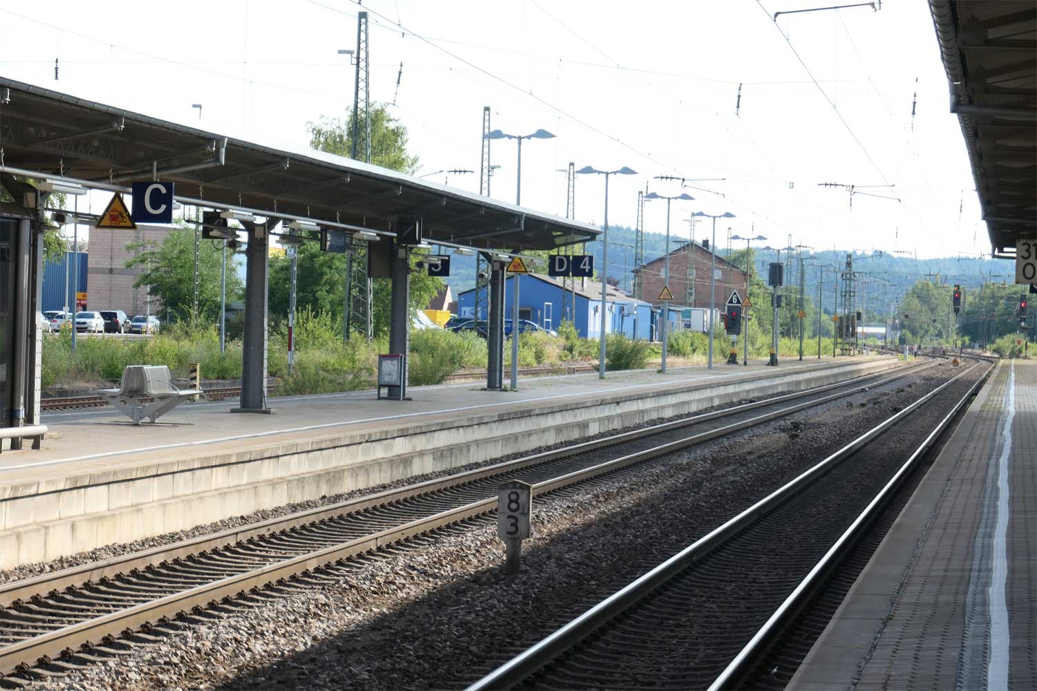 Homburg (Saar) Hbf 8,37 - Kaiserslautern Hbf 43,70 - Neustadt (Weinstr) Hbf 77,21 - Ludwigshafen (Rhein) Hbf 106,535 (kommend)/105,613 (gehend) -