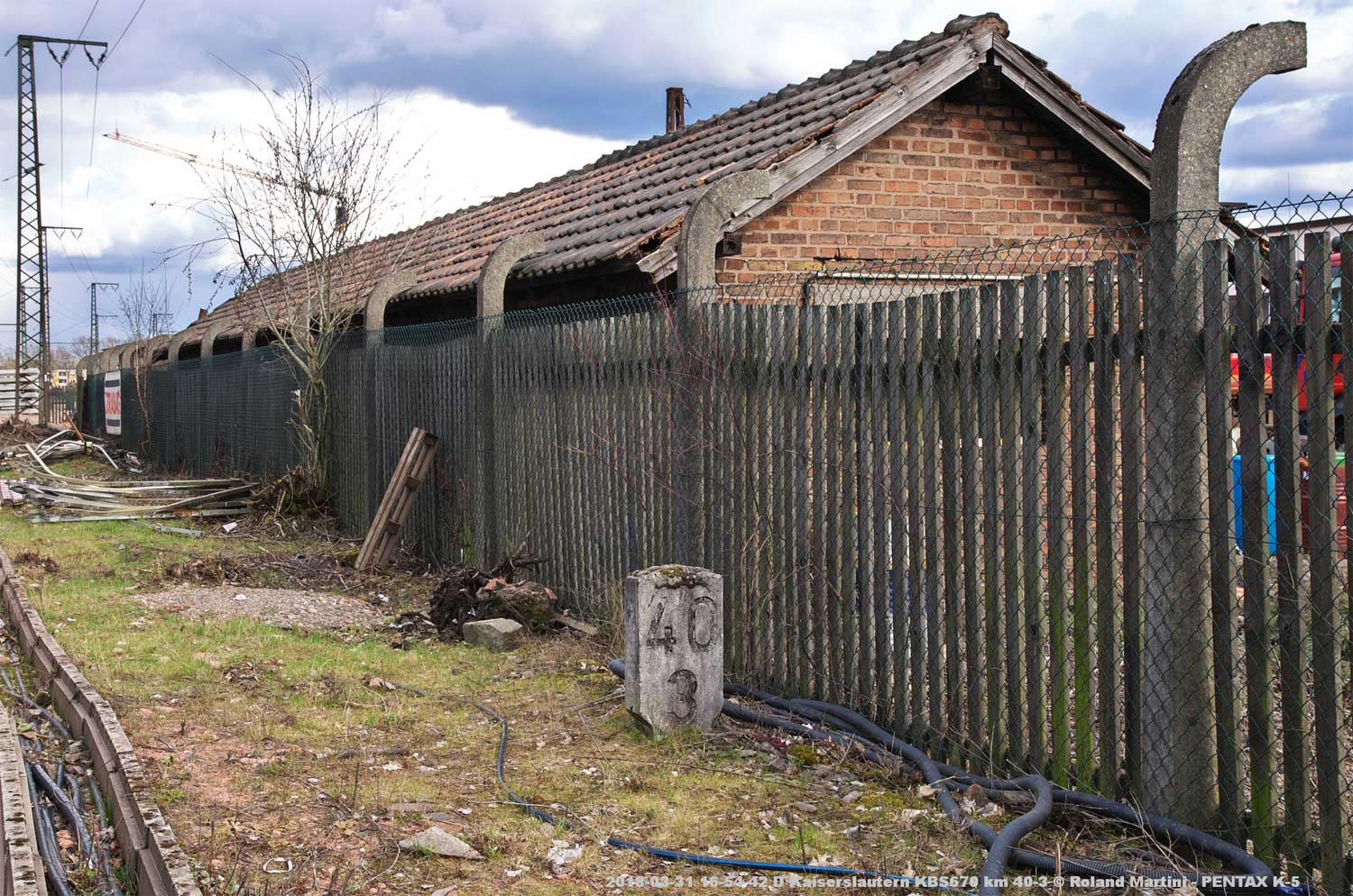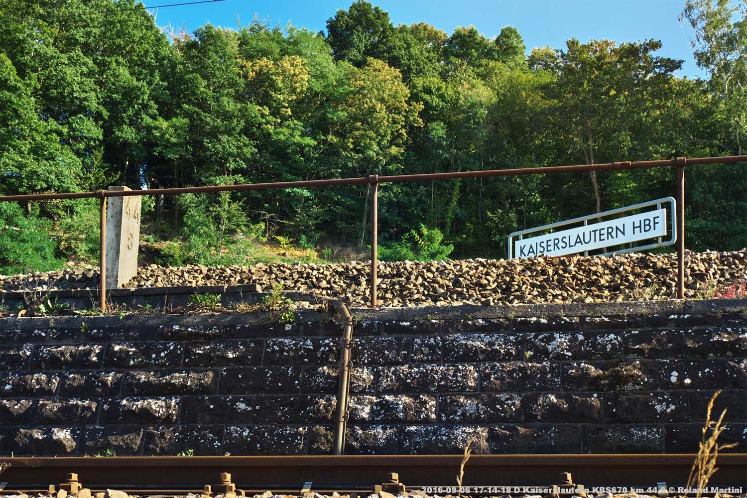 | Kaiserslautern Hbf | 43,70 | km 0,0 der Strecke Kaiserslautern Hbf 0,0 - Pirmasens Nord 29,02 |