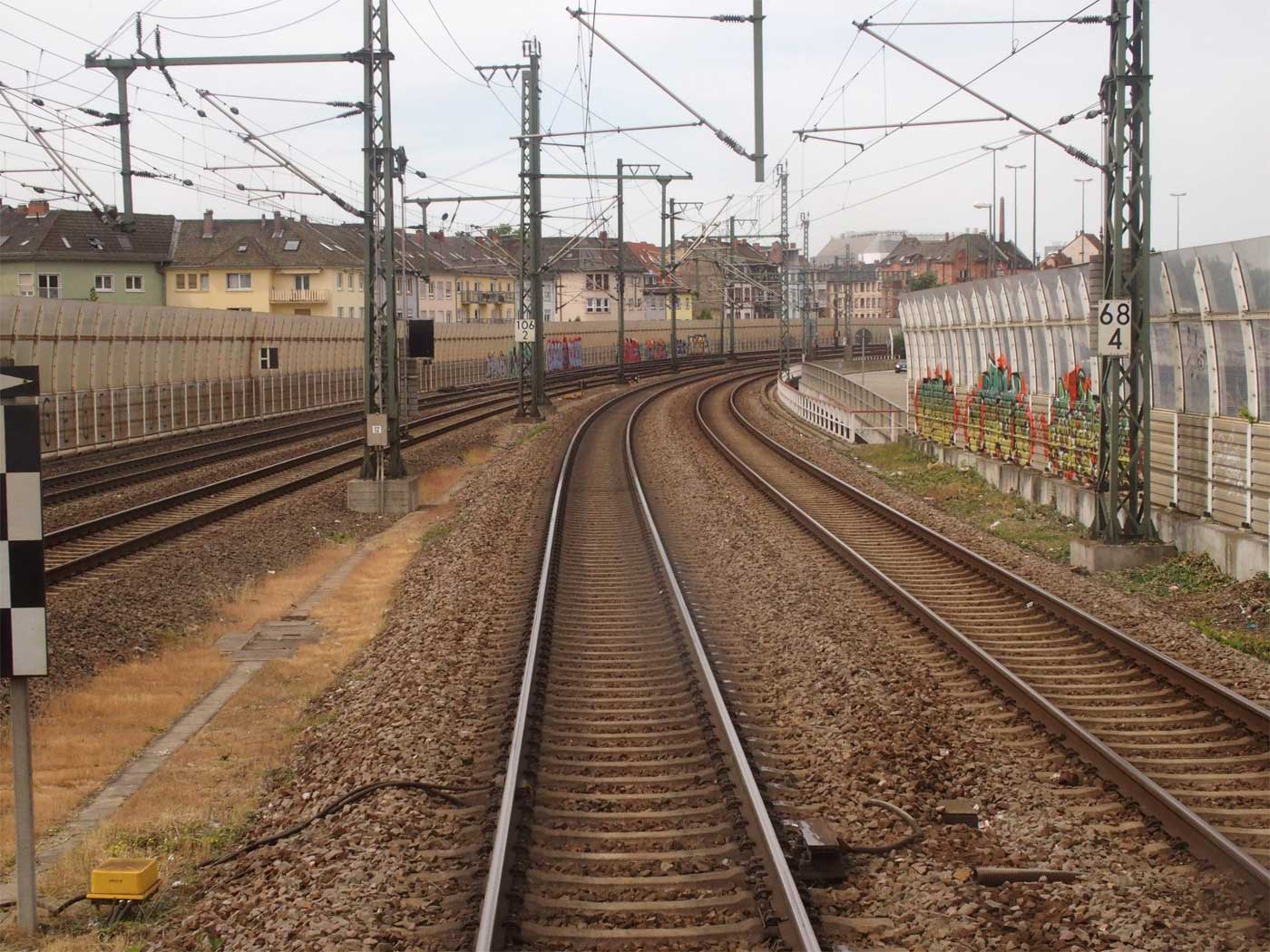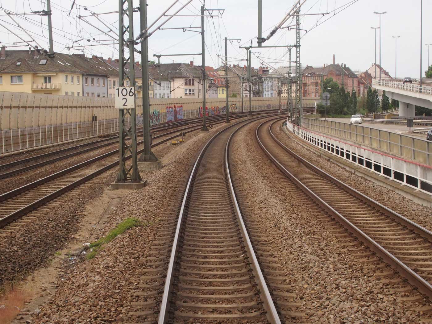 km 106,6 zwischen Ludwigshafen (Rhein) Hbf und Mannheim Hbf am Hp Ludwigshafen (Rhein) Mitte - Blick Richtung Homburg (Saar)