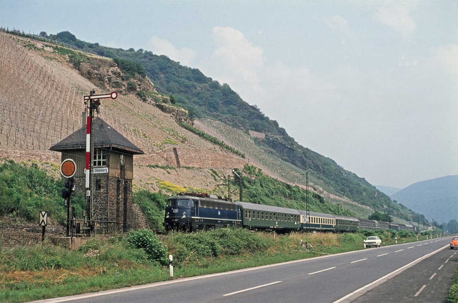 Kilometerwechsel auf der Nahbrücke - E10 1309 mit Rheingold