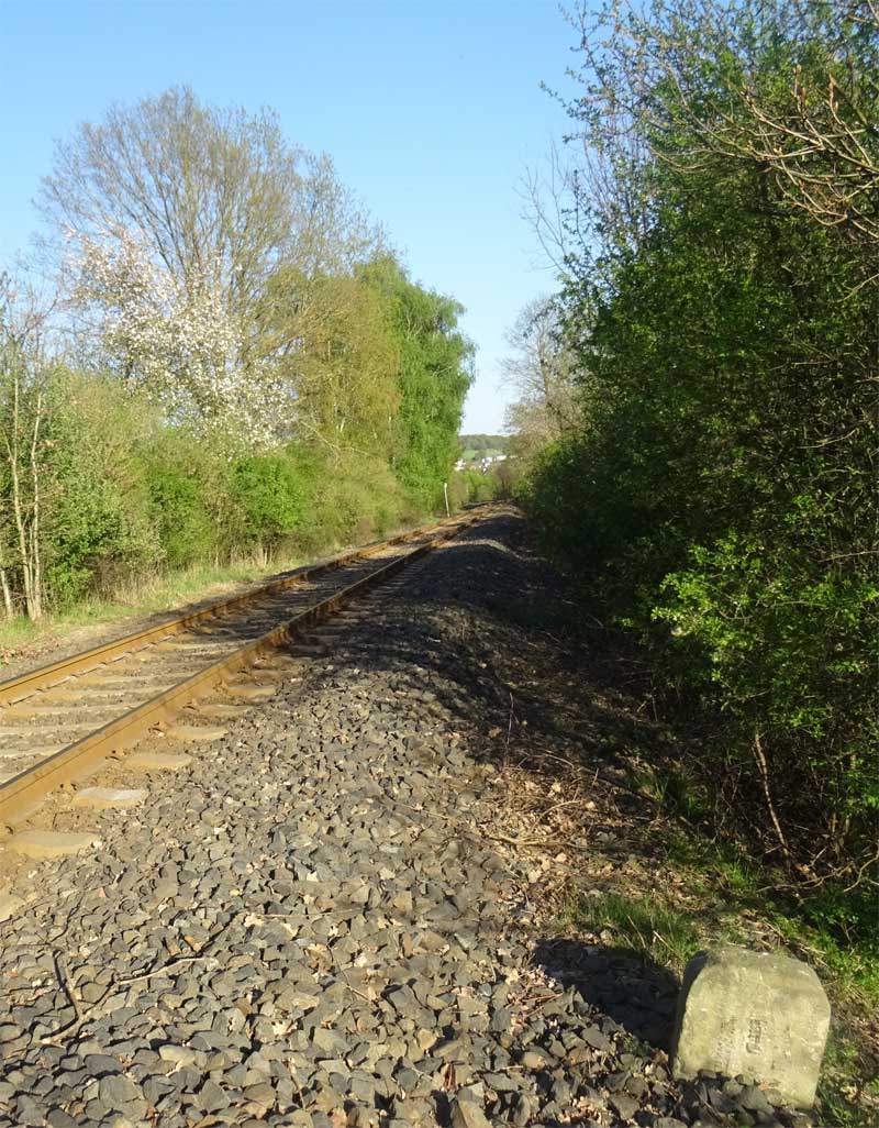 Der Stein unmittelbar neben der V 100 könnte der Nullstein der Strecke