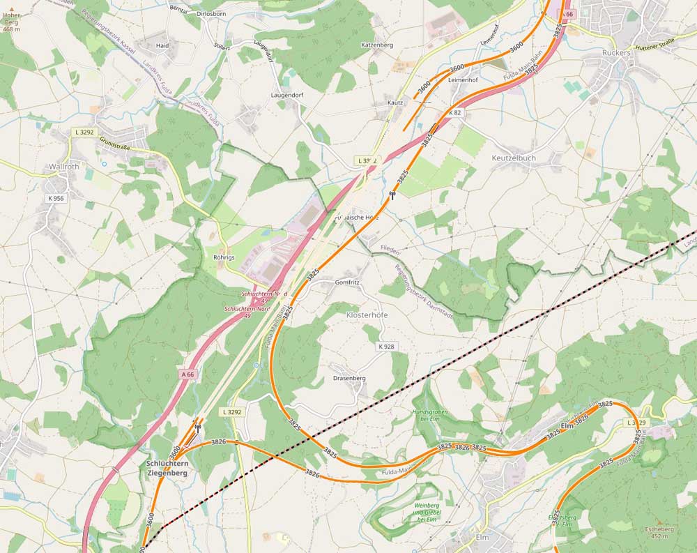 | Bk Ziegenberg | 77,64 | km 3,30 der Strecke Schlüchtern 0,0 - Elm 7,75 |