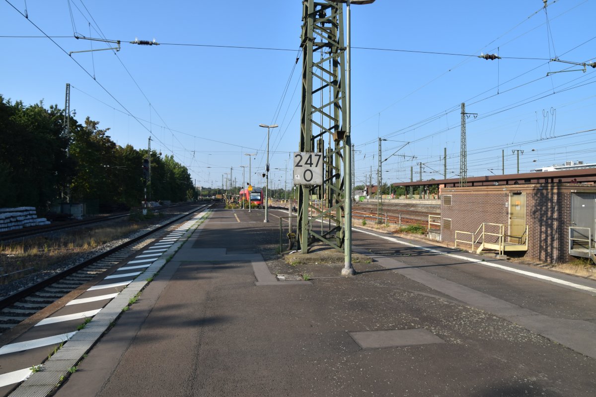 | km 0,0 der Strecke Frankfurt (Main) Hbf 0,0 - Wiesbaden Ost 37,80 - Wiesbaden-Biebrich 39,47 - Niederlahnstein 123,82 - km 125,70 = km 154,68 (auch Angabe: 125,72 = 154,66) von Mülheim (Ruhr)- Speldorf 0,18 (siehe auch Tabelle 3, Ziffer 2) | ||