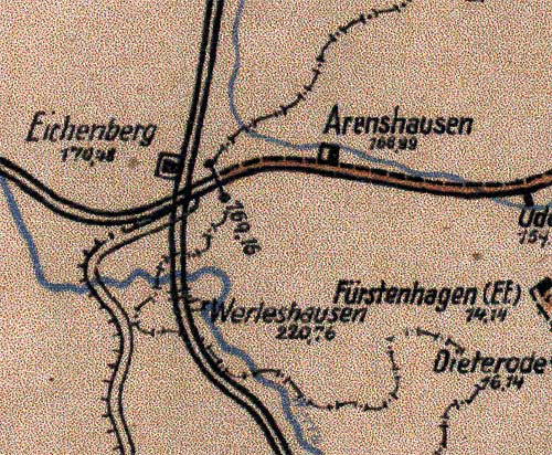 Velmeden 0,0 - Großalmerode Ost 6,61 - Eichenberg 25,04 (zugewuchert) bei km 24,7