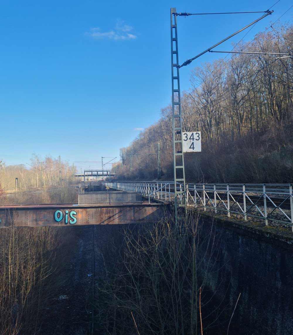 km 1,8 (Stein und Tafel) gehört zum Gegenrichtungsgleis der Strecke