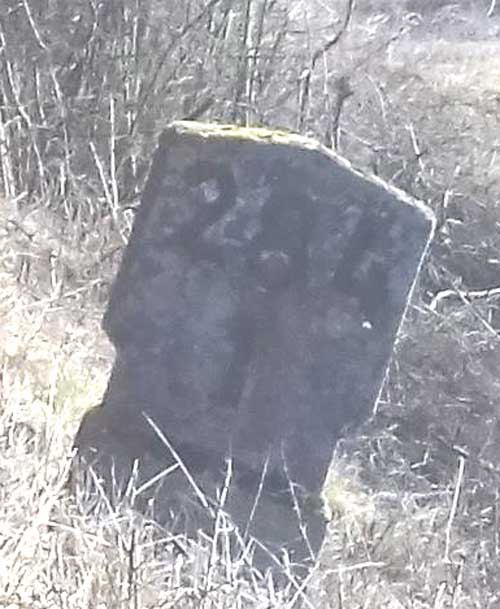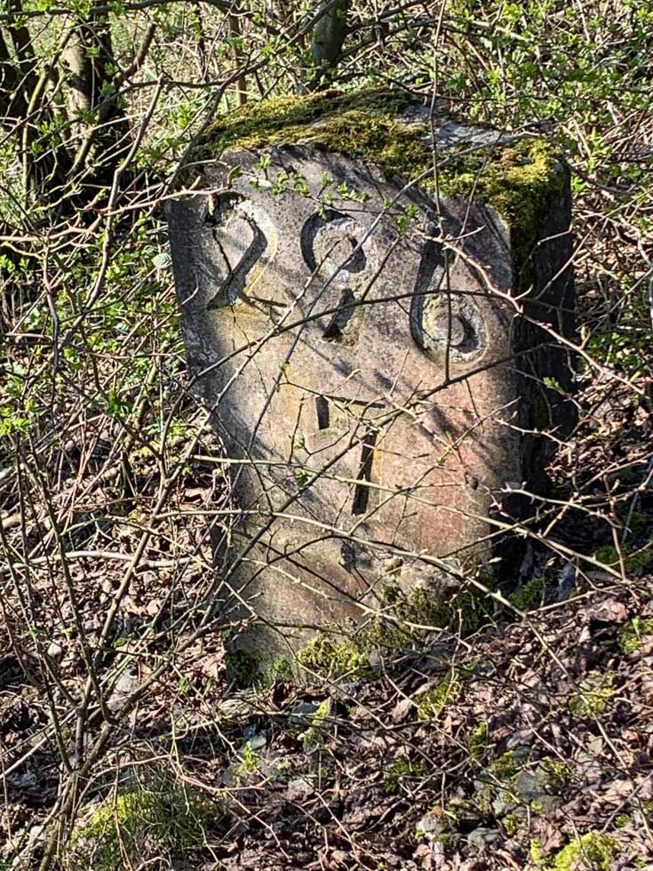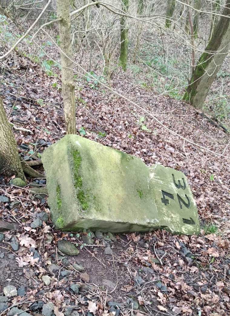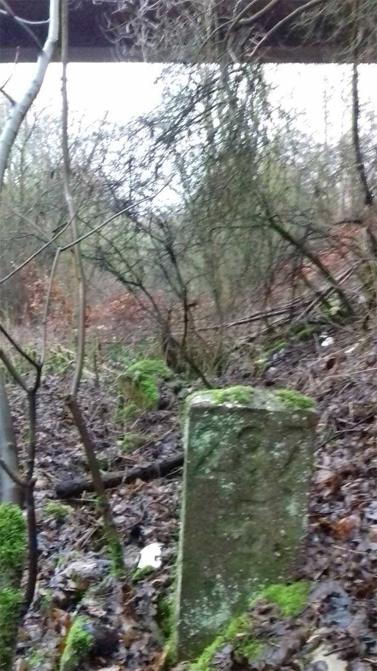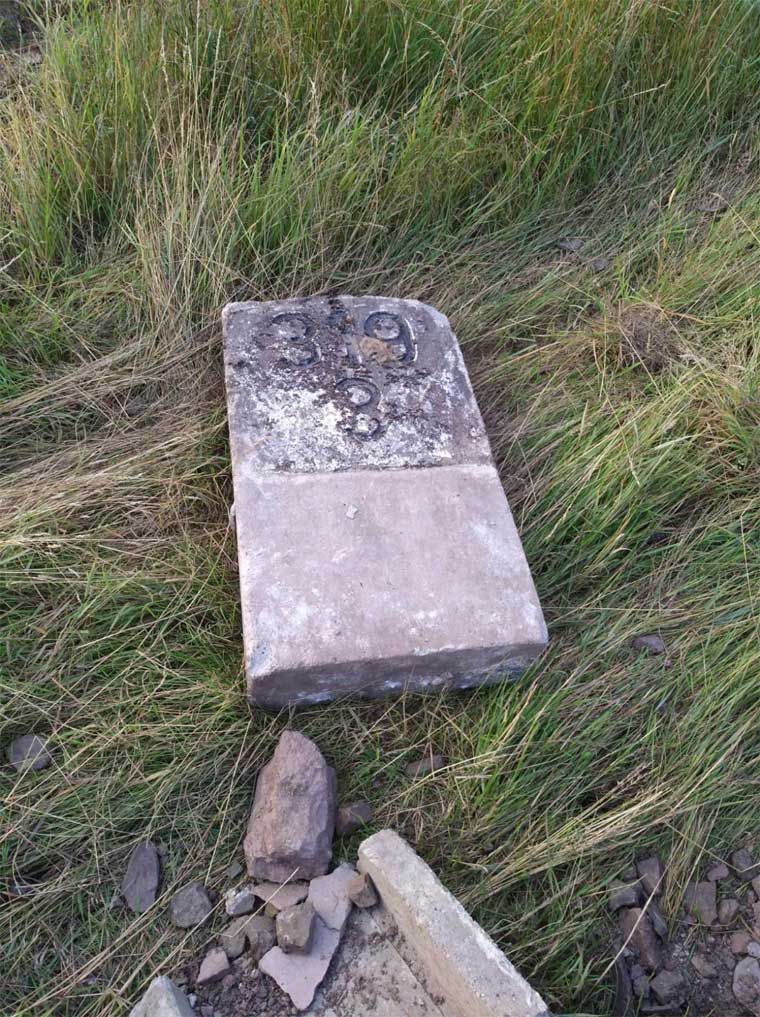 Der Stein hat ausgedient und liegt bei Amelunxen mit weiteren Steinen der Strecke Ottbergen 0,0 - Uslar 35,51 - Northeim (Han) 63,96