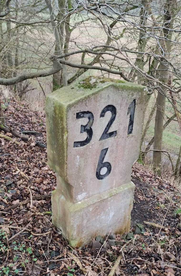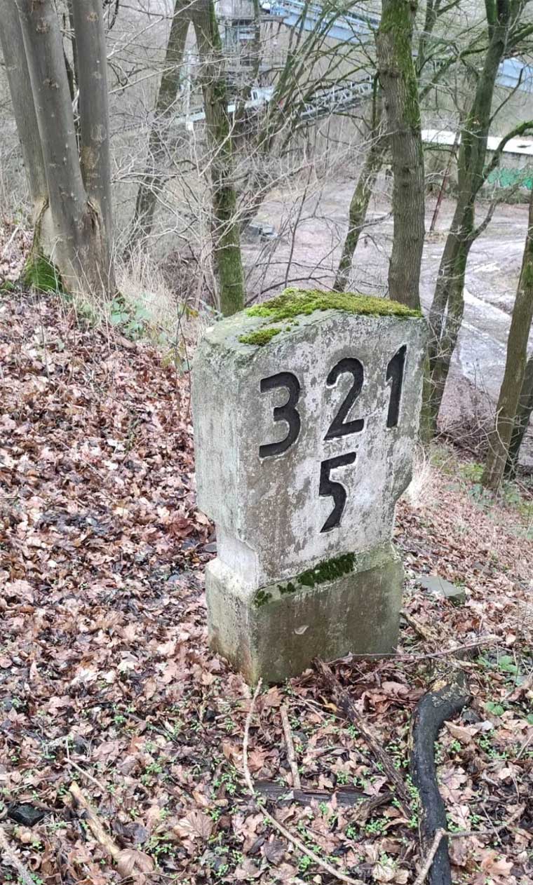 km 5,0 (Tafel und Stein) gehören zur Strecke