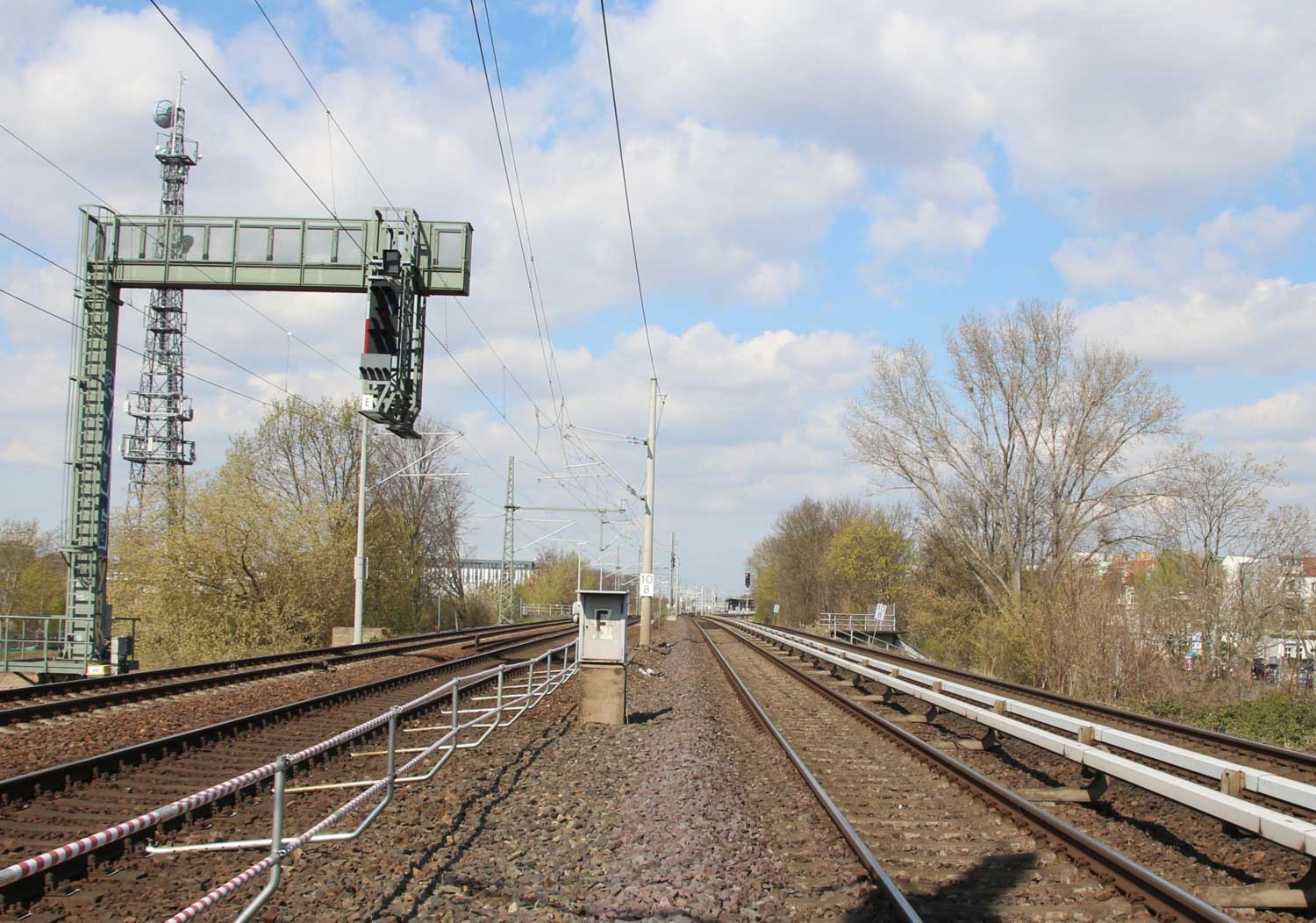 km 12,4 (Gegenrichtungsgleis) am Grünauer Kreuz - Blick Richtung Berlin