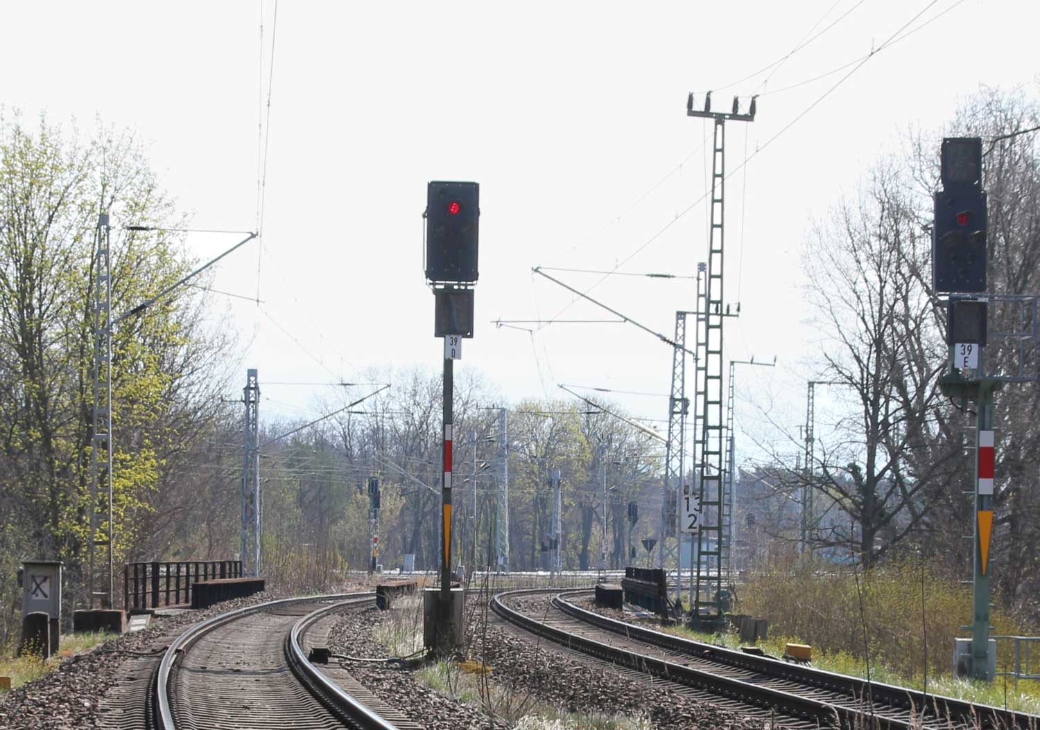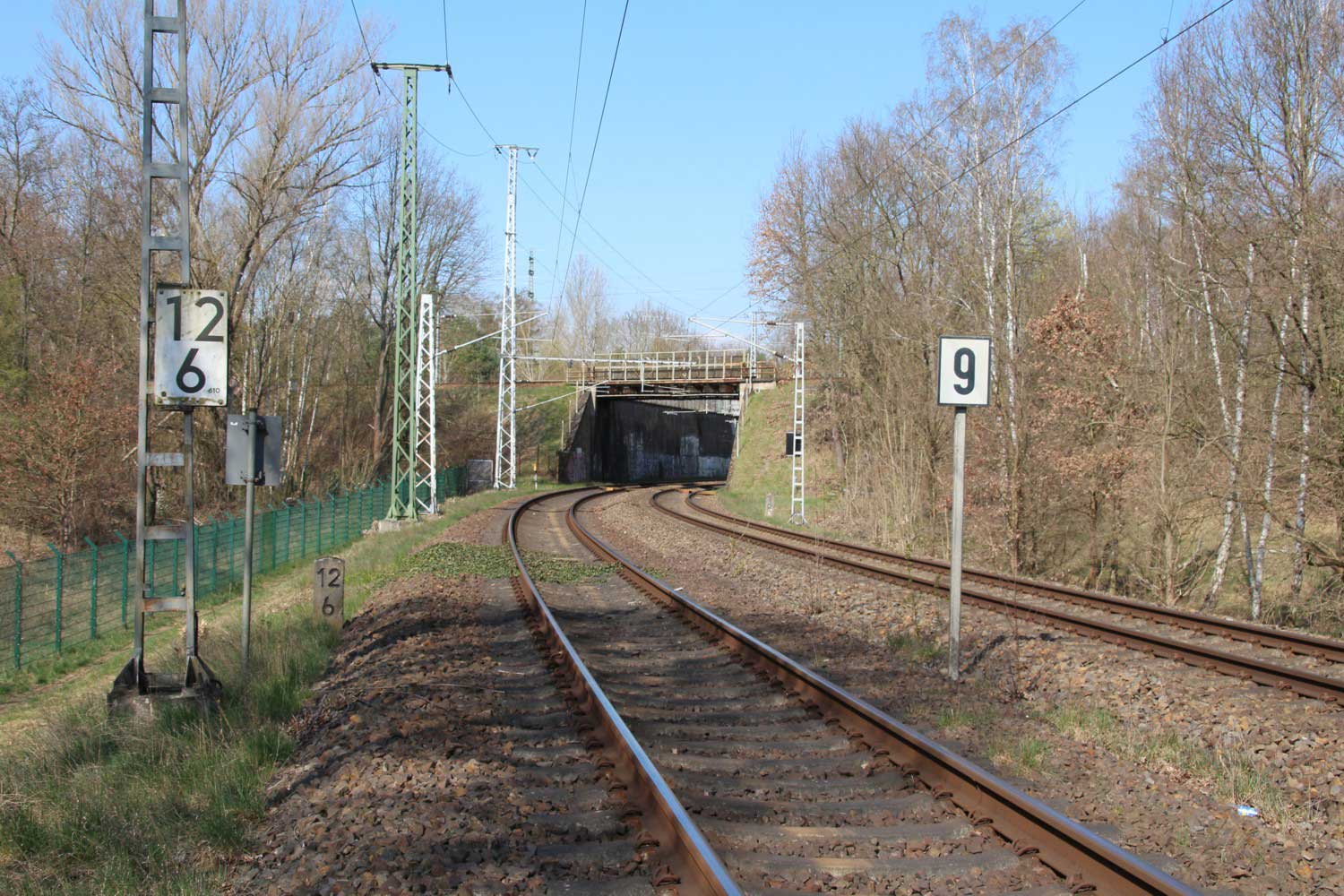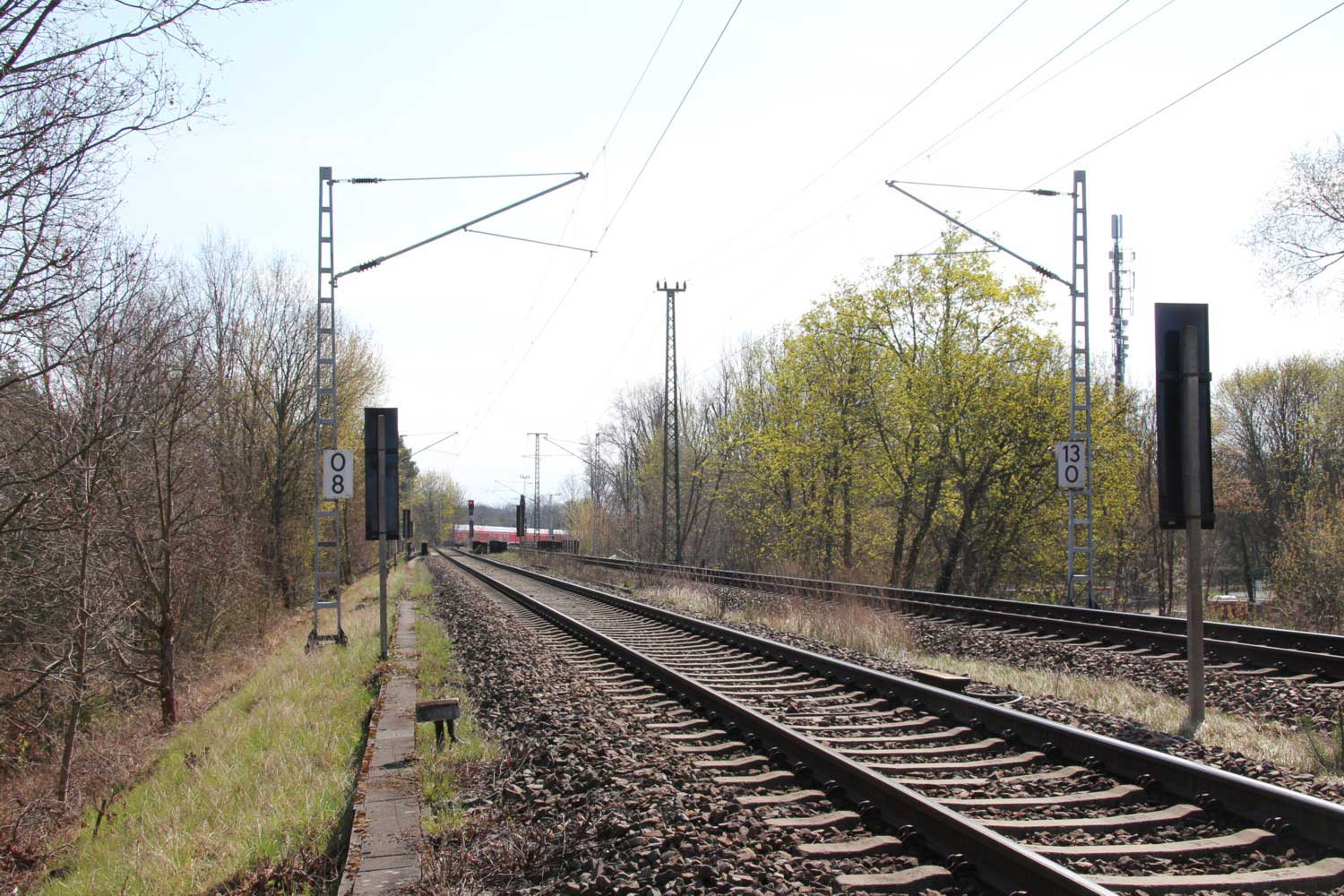 km 12,8 (Richtungsgleis) und km 13,0 (Richtungsgleis) im Bereich Grünauer Kreuz - Blick Richtung Görlitz