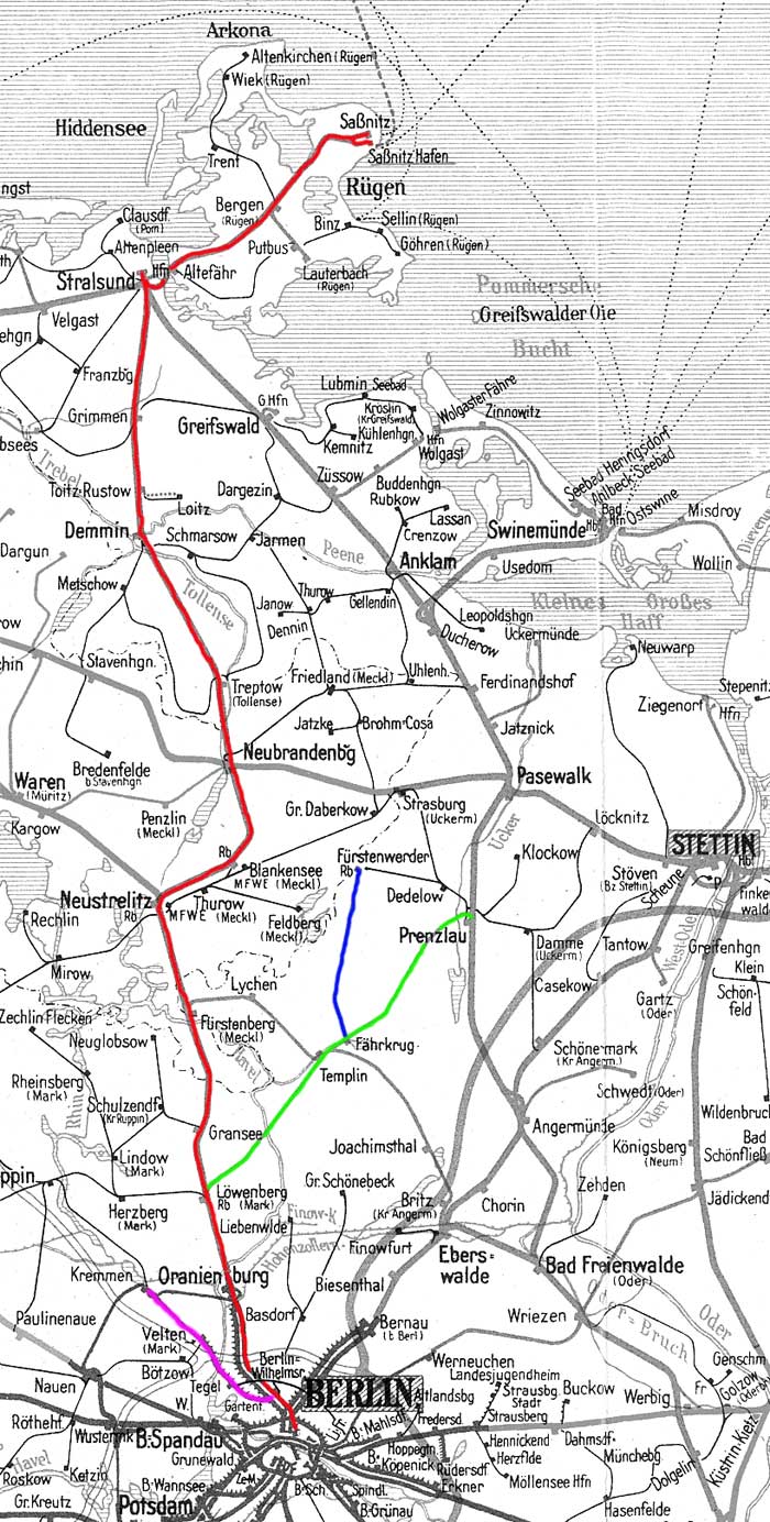 Berlin Nordbahnhof - Löwenberg Reichsbahn (Mark) - Stralsund - Sassnitz Hafen