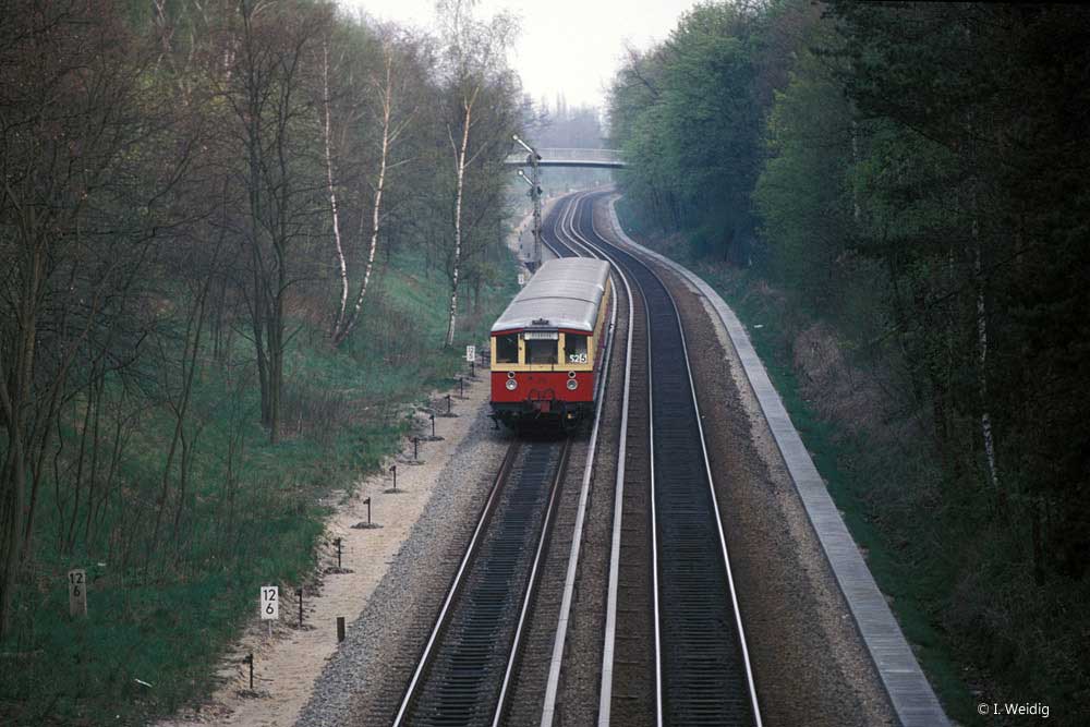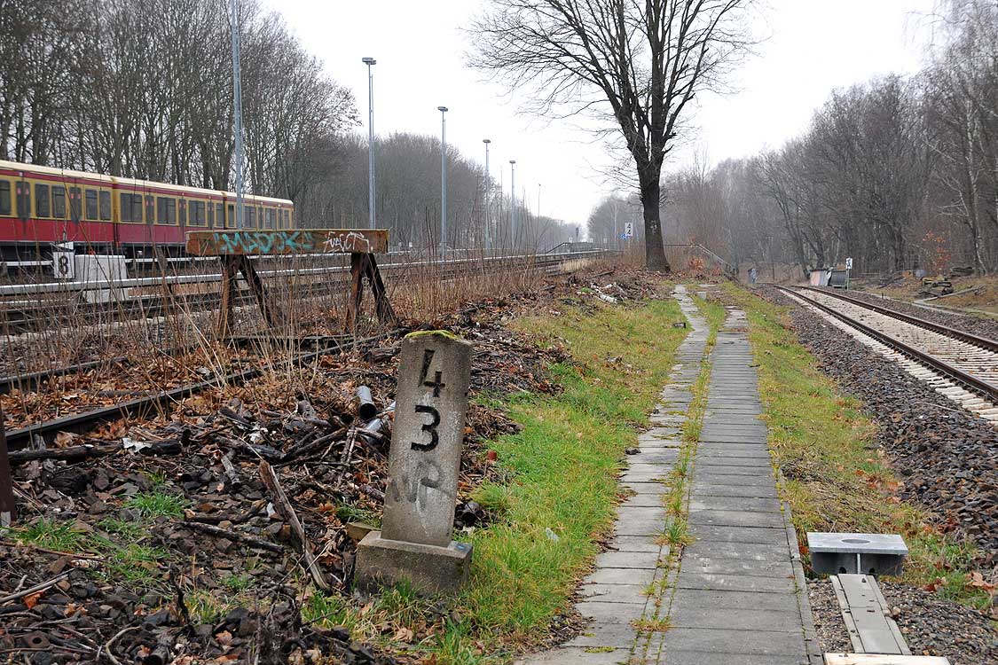 rechts das ehemalige Gleis des Streckenast Abzw Fichtengrund Ost - Fichtengrund Süd (bis 1964 bis nach Oranienburg)