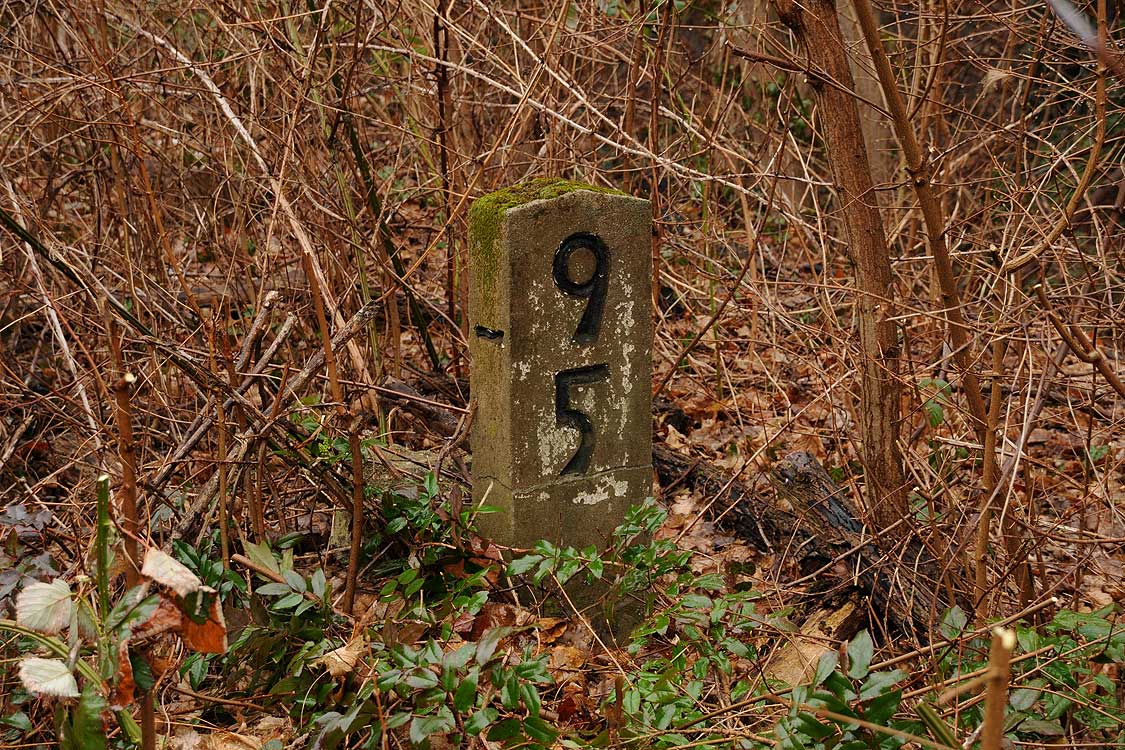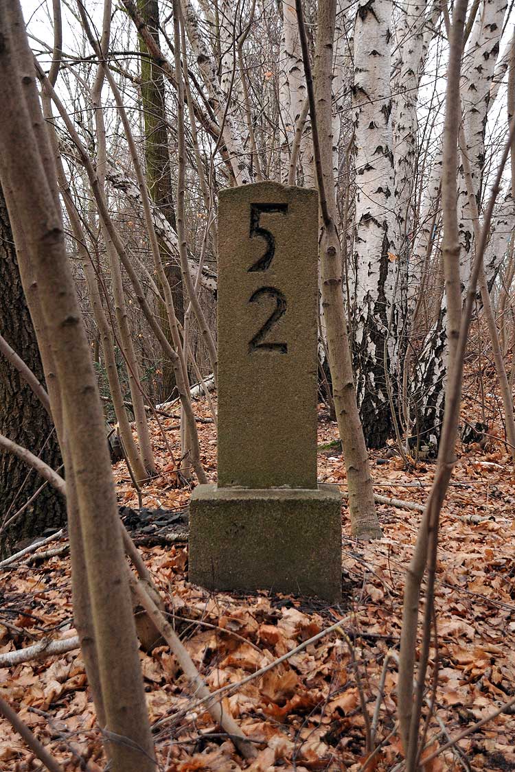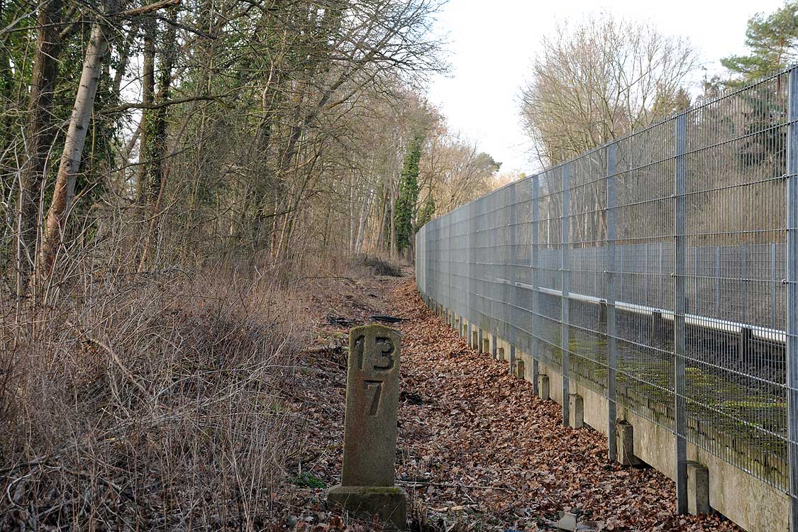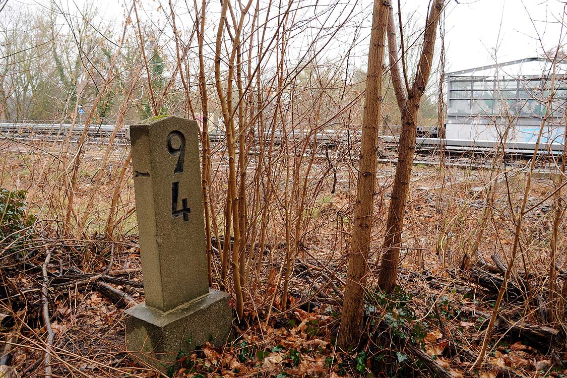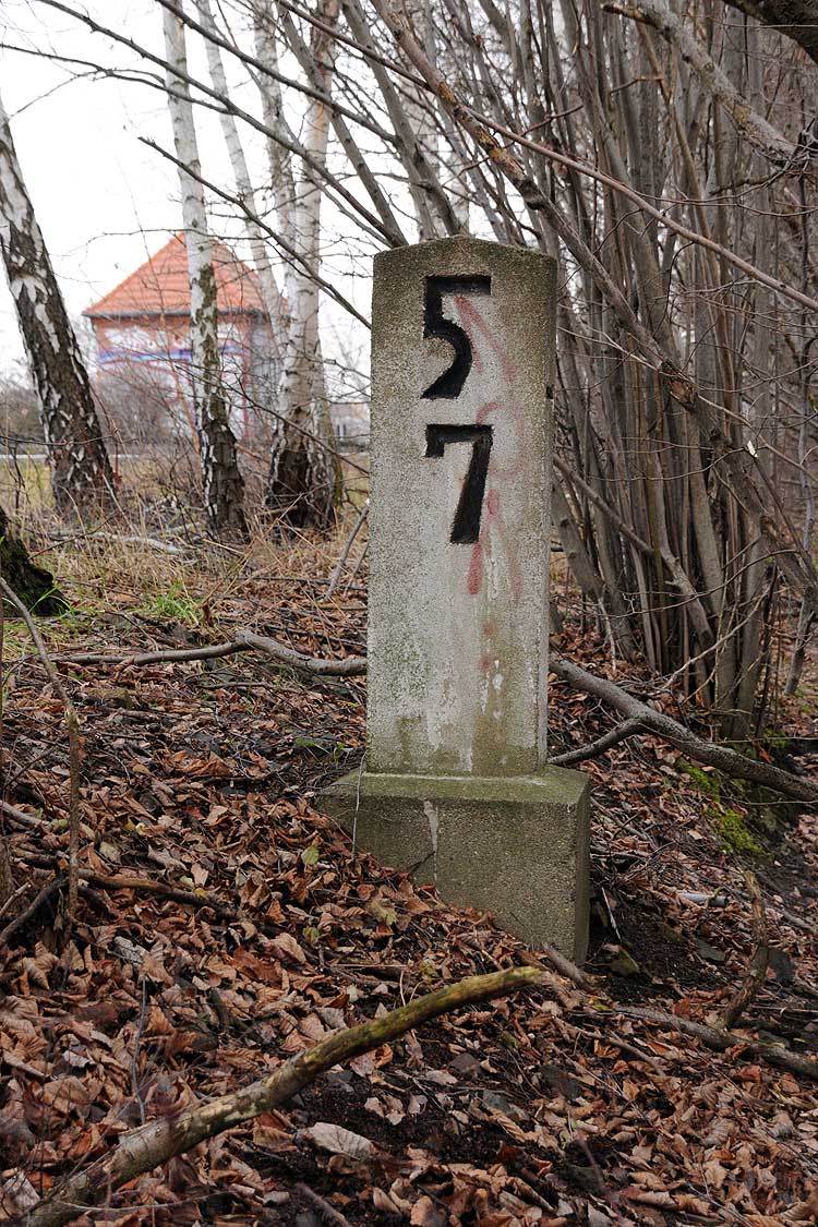 km 29,2 (Stein und Tafel) in Sachsenhausen (Nordbahn) - Blick Richtung Berlin